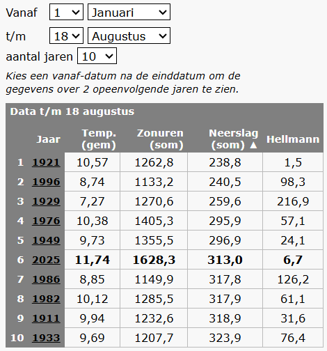 Of het Azorenhoog breidt zich uit naar het noordoosten of er ligt een stevige gordel van hogedruk boven de oceaan. Daarom ook zo'n droog jaar totnutoe.