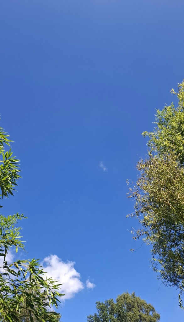 Zelden zo'n knalblauwe lucht gezien. Donkerder dan normaal. Ik krijg het niet goed op de foto helaas.