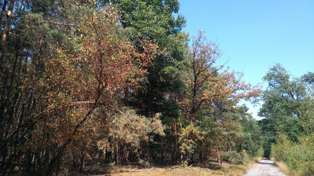 Hier totaal onvergelijkbaar met 2018, nu op een vergelende berk na gewoon groene bossen. Toen bruine eiken, dennen, berken, beuken en vogelkers.