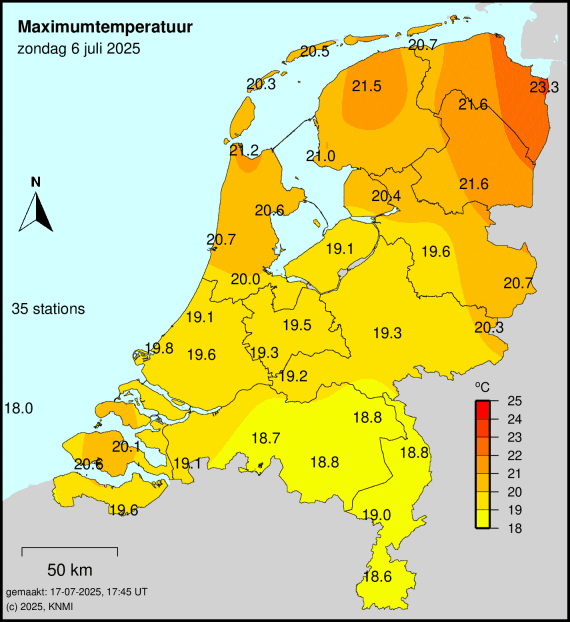 Hier juli en augustus maar 3x onder de 20°C.