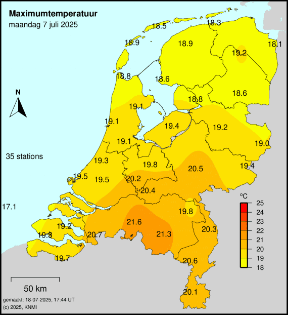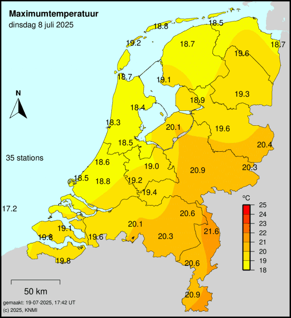 Reeks warme dagen is tot een einde gekomen, Tmax 19,0°C