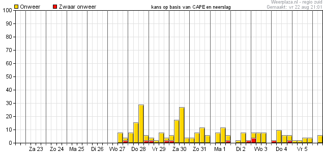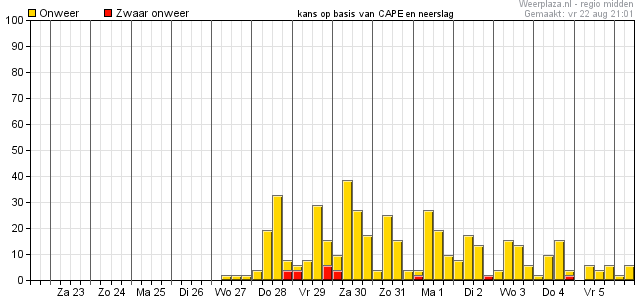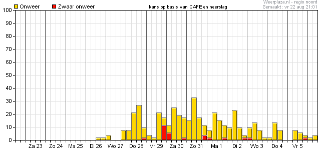 In het noorden en midden duidelijk wat grotere kansen. Voor de pluim West overigens ook. Oost zit er wat meer tussenin vergeleken met de rest en zuid.
