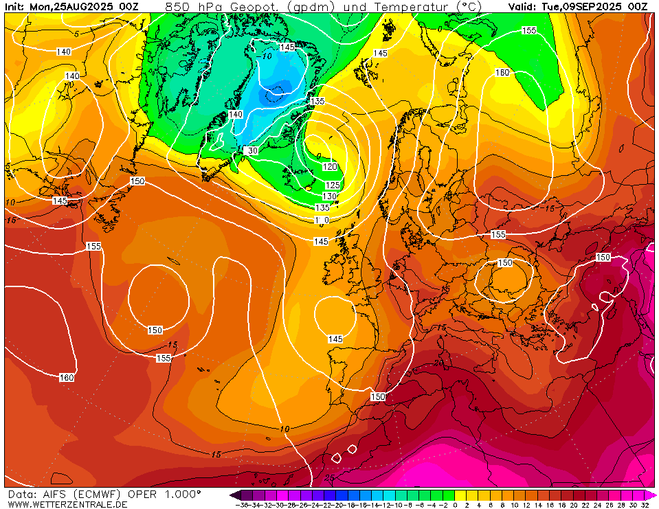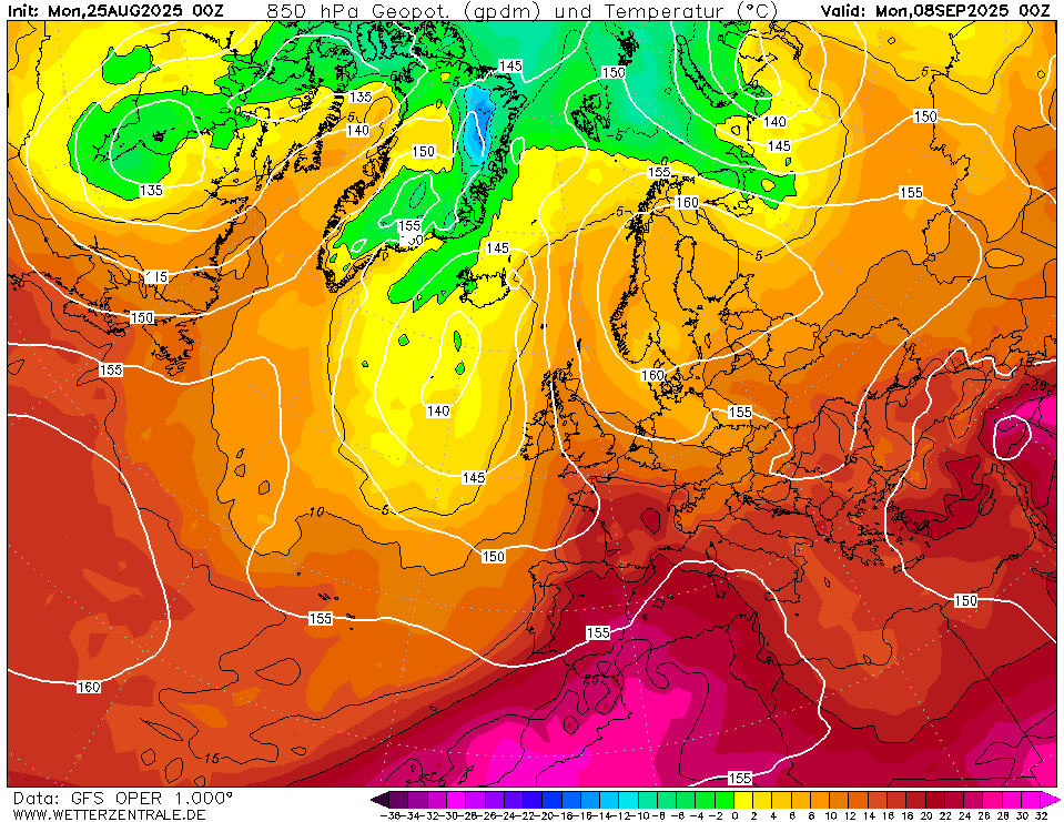 Het valt me vanochtend wel op dat de operruns van zowel GFS als AIFS met opbouwende hogedruk boven Scandinavië komen richting het einde van de eerste decade van september en in beide modellen strekt die invloed met warmere continentale winden zich op enig moment ook over ons aandachtsgebied uit. Zie onderstaande kaarten van beide modellen, eens kijkenof dat er in blijft zitten de komende runs: