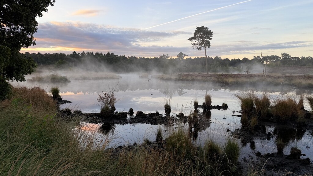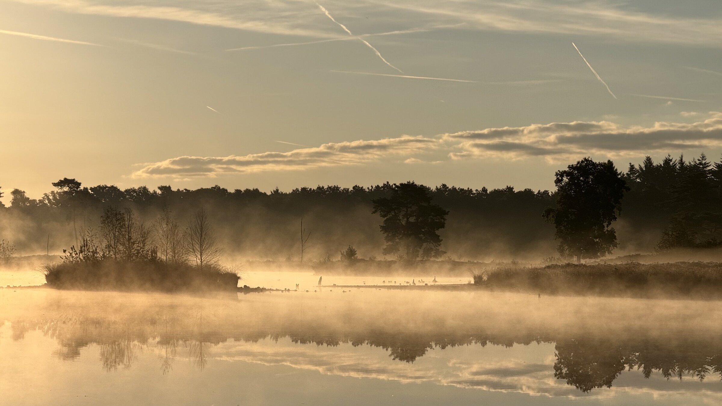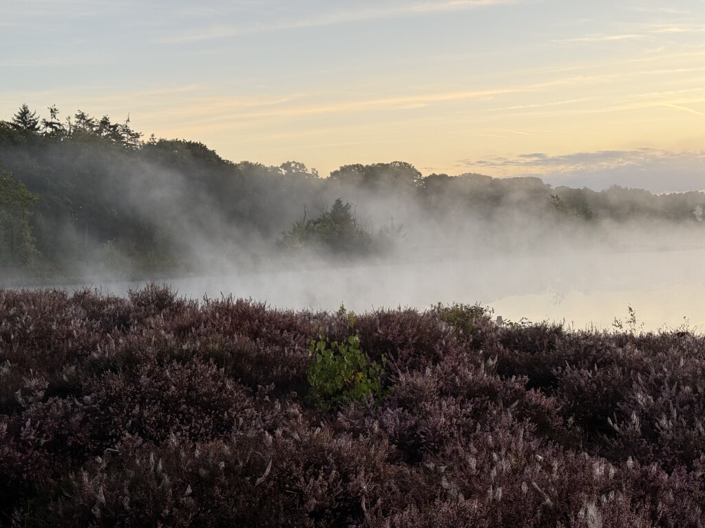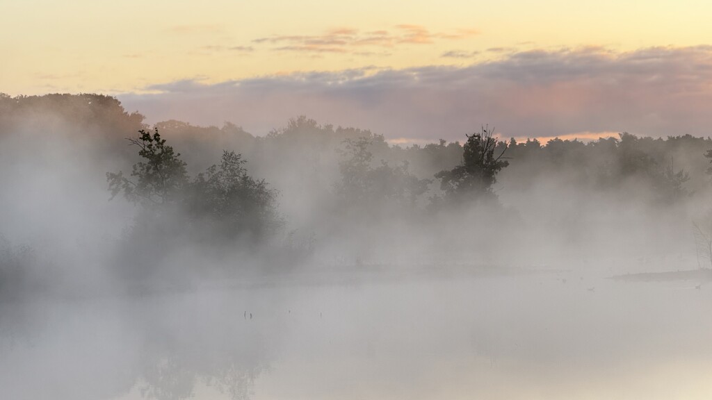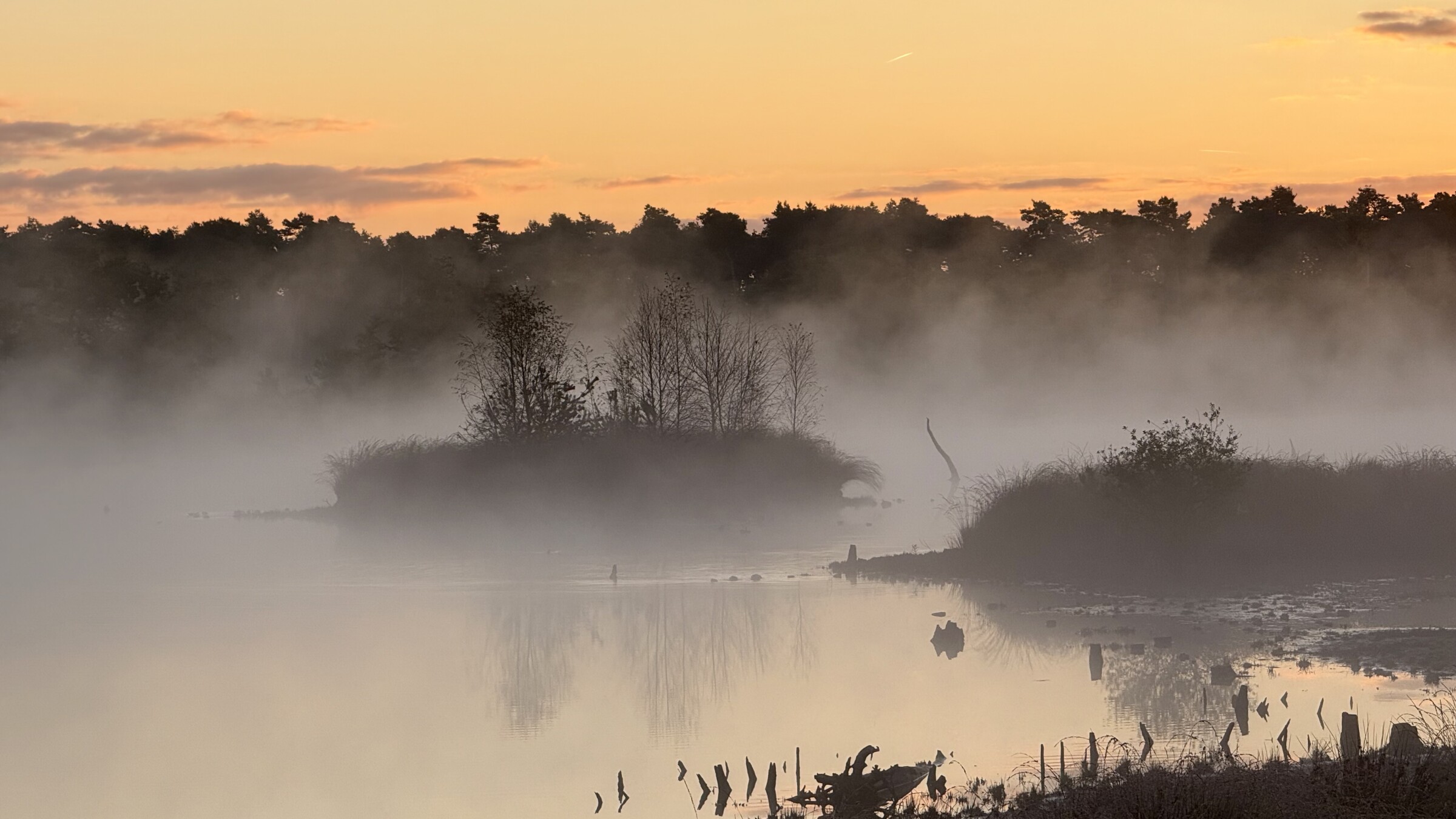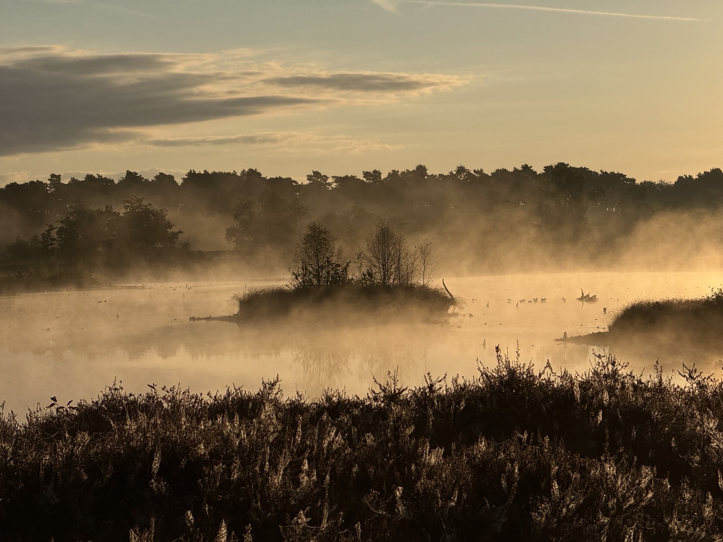 Vanochtend was er mooie ondiepe mist bij de Hatertse en Overasseltse Vennen (onder Nijmegen). Het was nogal fris met een graad of 6, voor het eerst de handschoenen weer aan gehad op de fiets