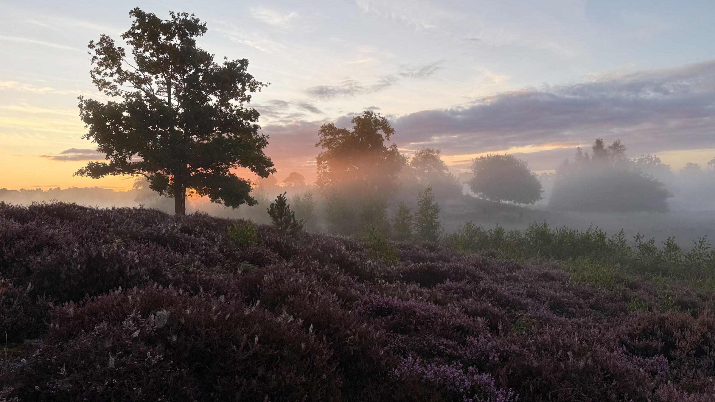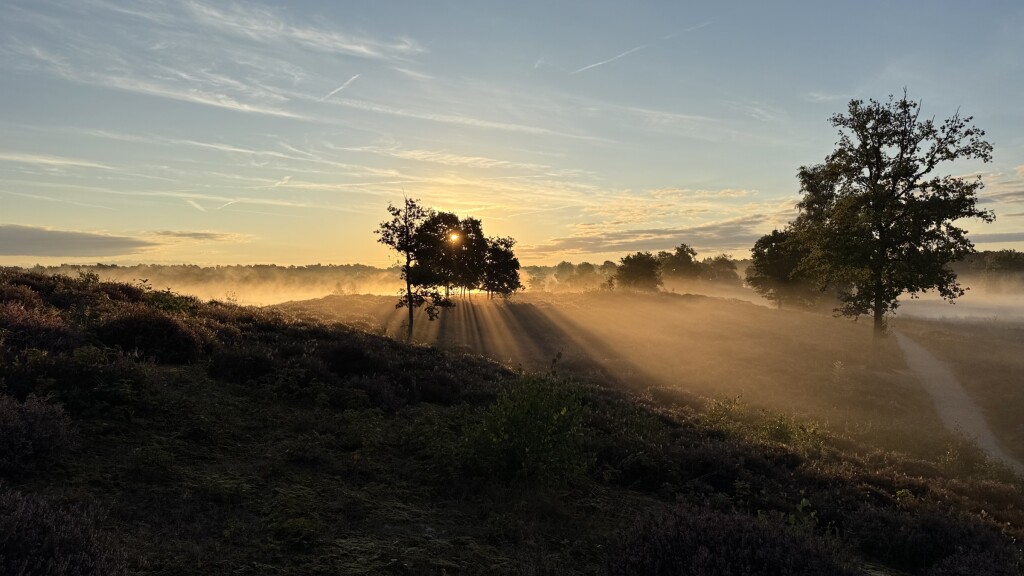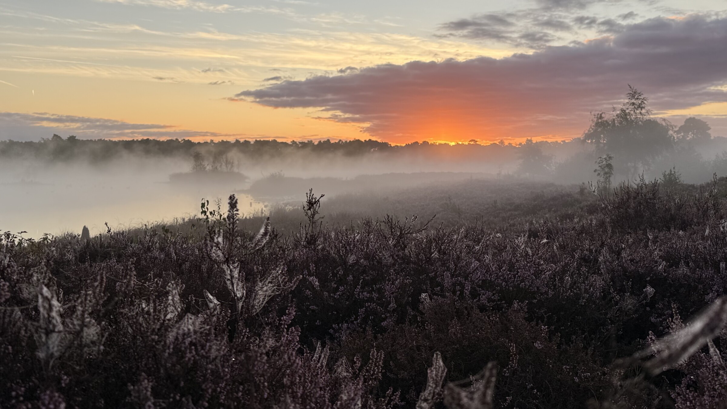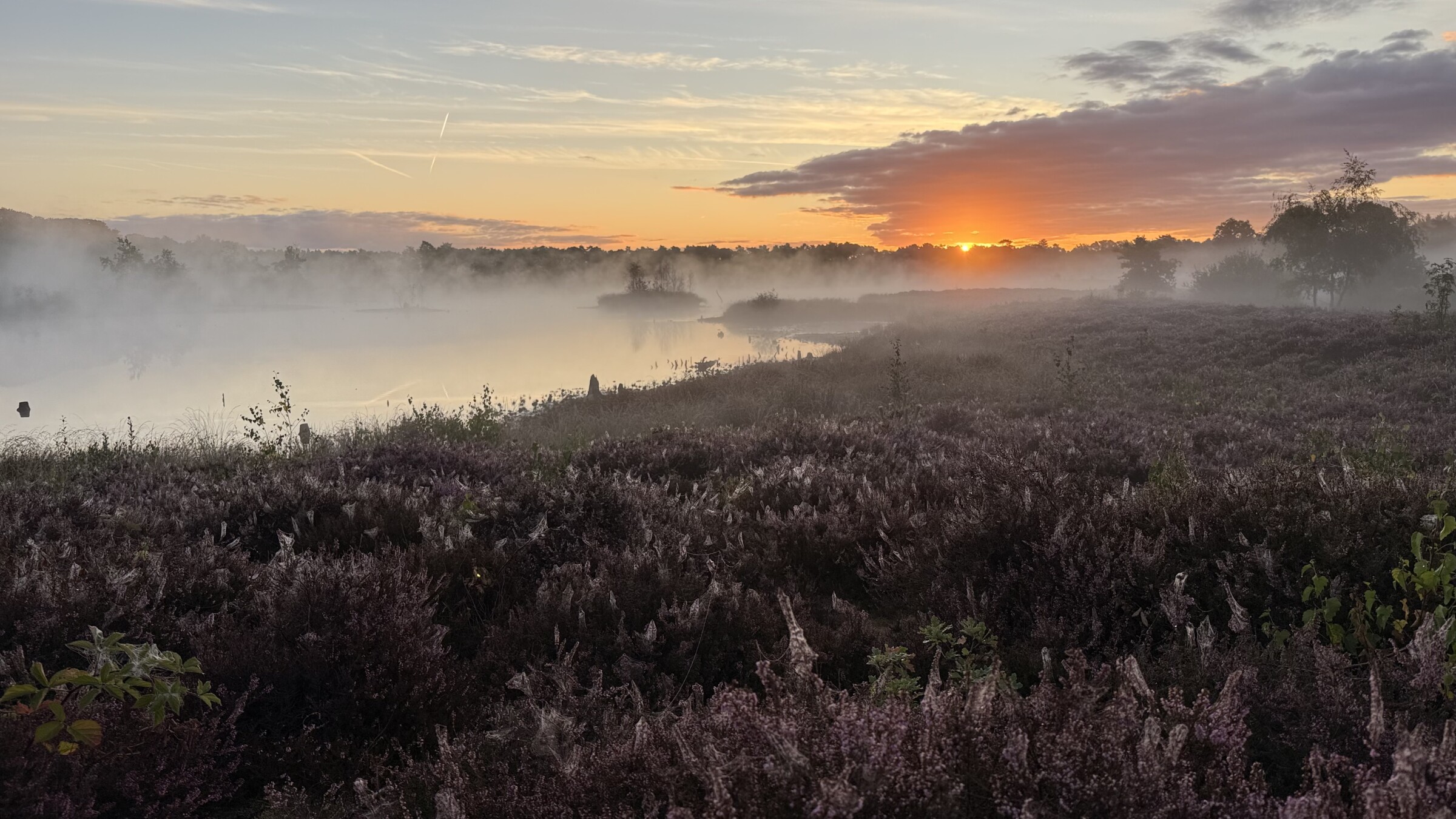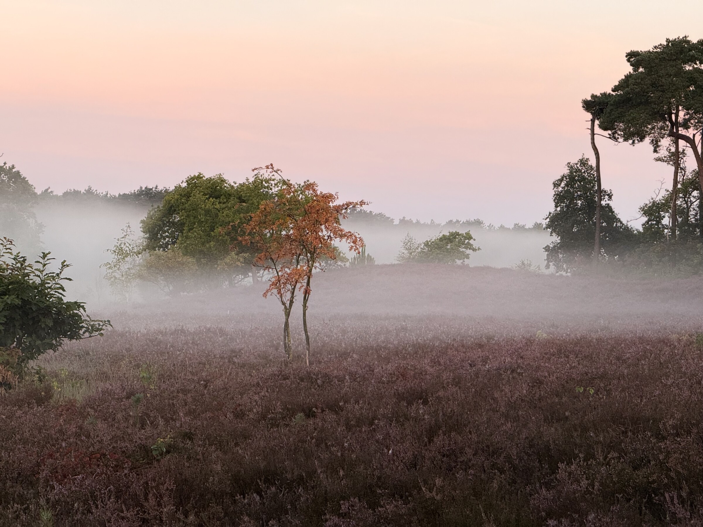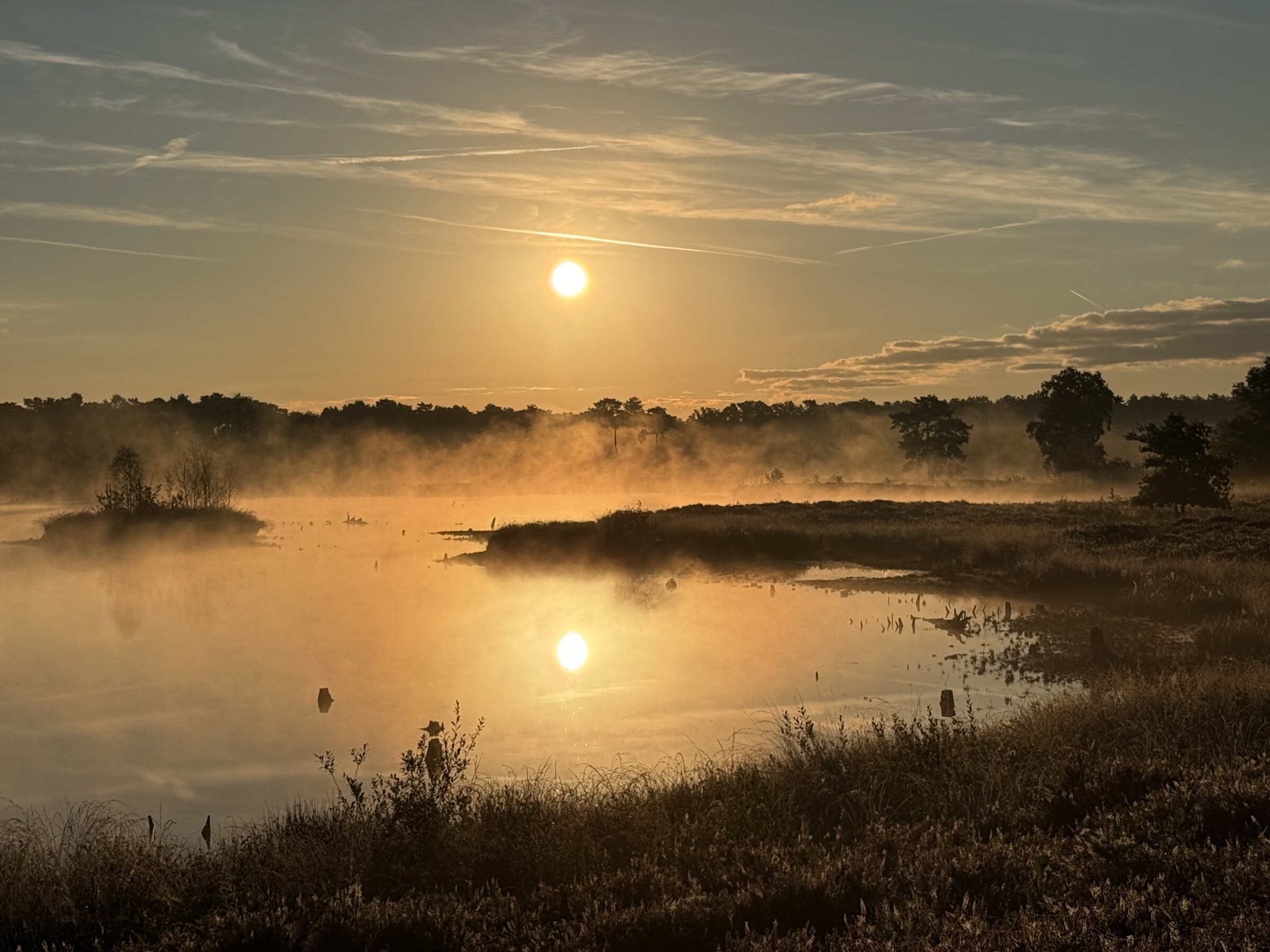 Vanochtend was er mooie ondiepe mist bij de Hatertse en Overasseltse Vennen (onder Nijmegen). Het was nogal fris met een graad of 6, voor het eerst de handschoenen weer aan gehad op de fiets