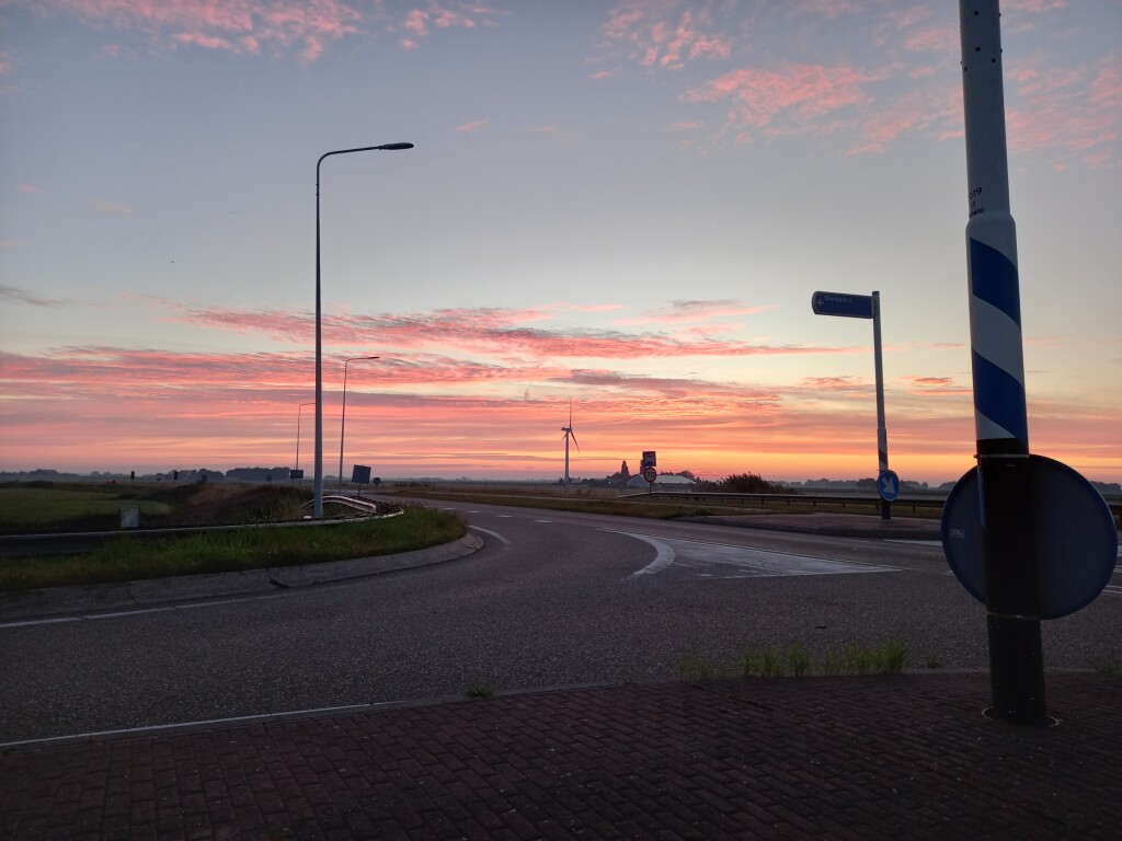 Goedemorgen Tact 15.5, matige Z, weer mooie kleuren bij zonsopgang.