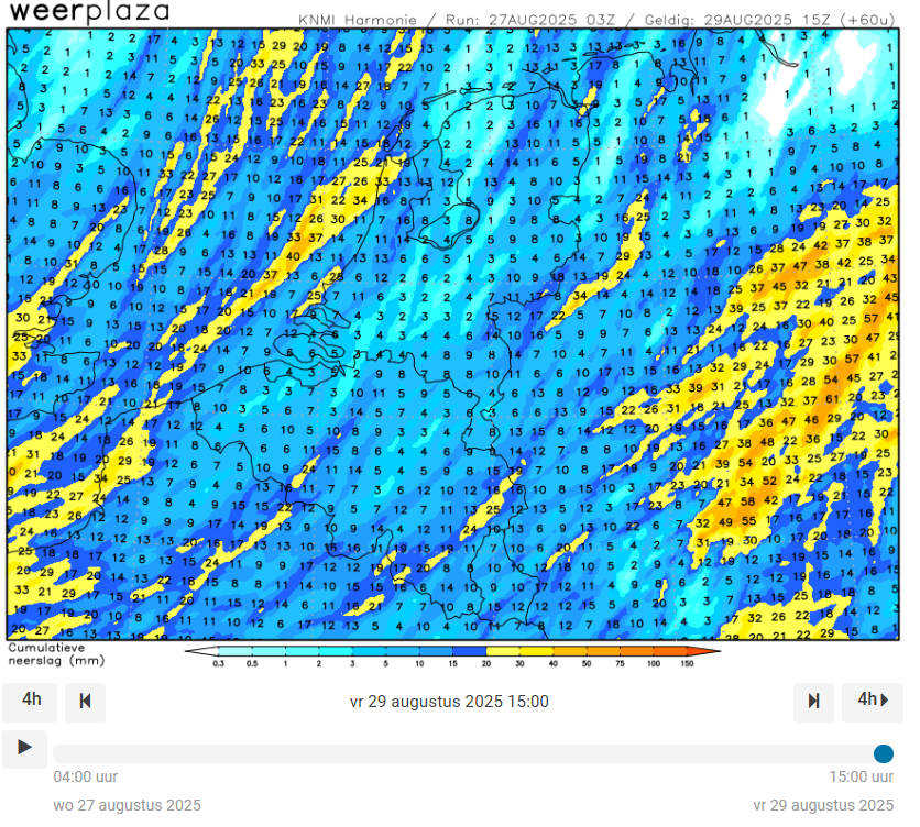neerslagverwachting Harmonie: lokaal grote verschillen
