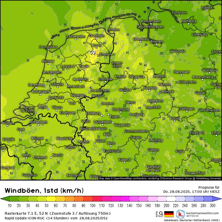 Edit: ik had nieet gezien dat ik de neerslagafbeelding dubbel had geüpload in plaats van die van de windstoten. Dat is nu gecorrigeerd.