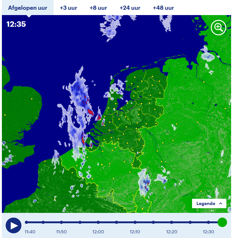 Weer wat regen, nieuwe buien ontw. bij Oostende lijkt.