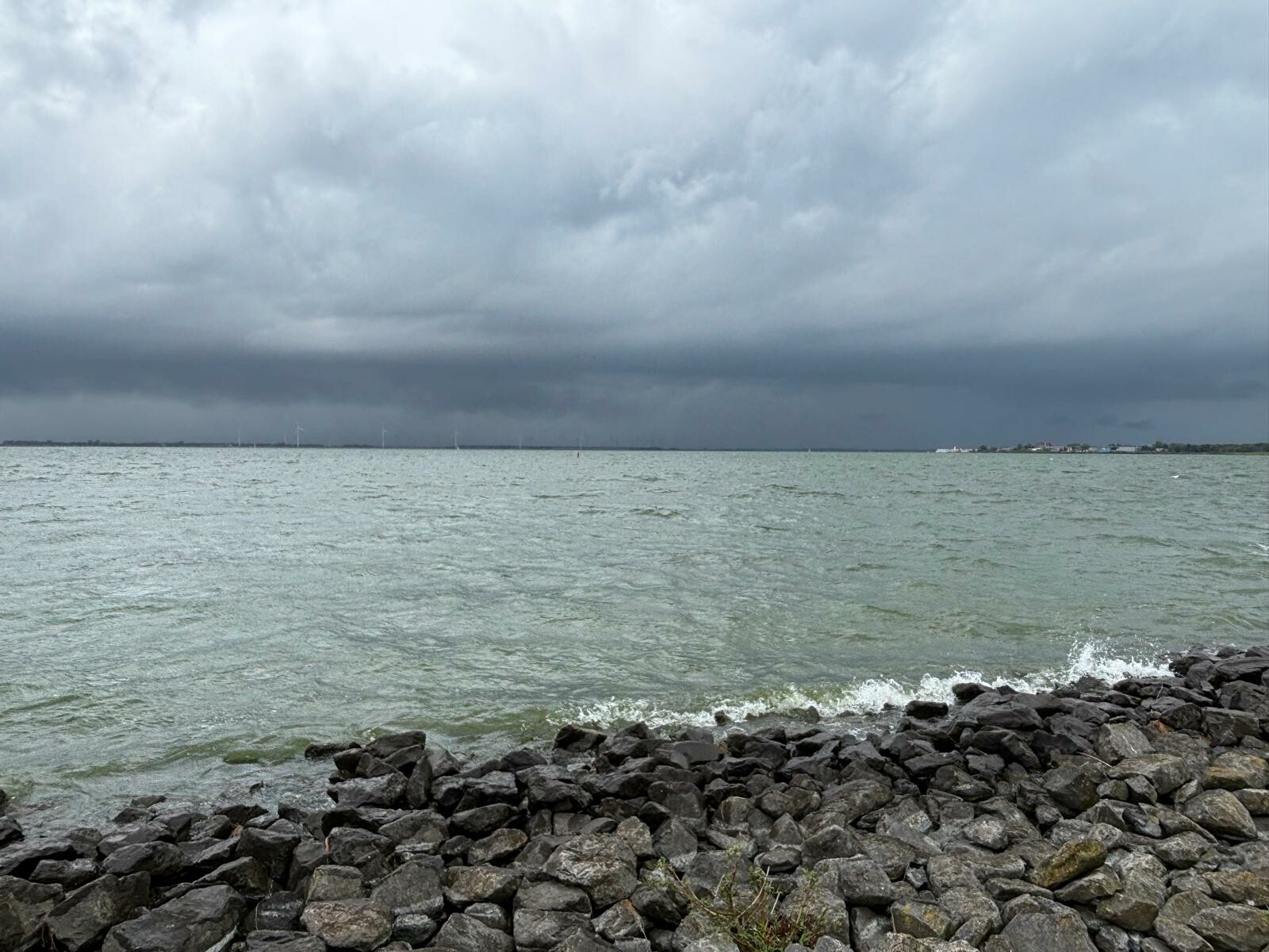 Vanuit Vianen een gelijksoortig beeld, bui trok langs