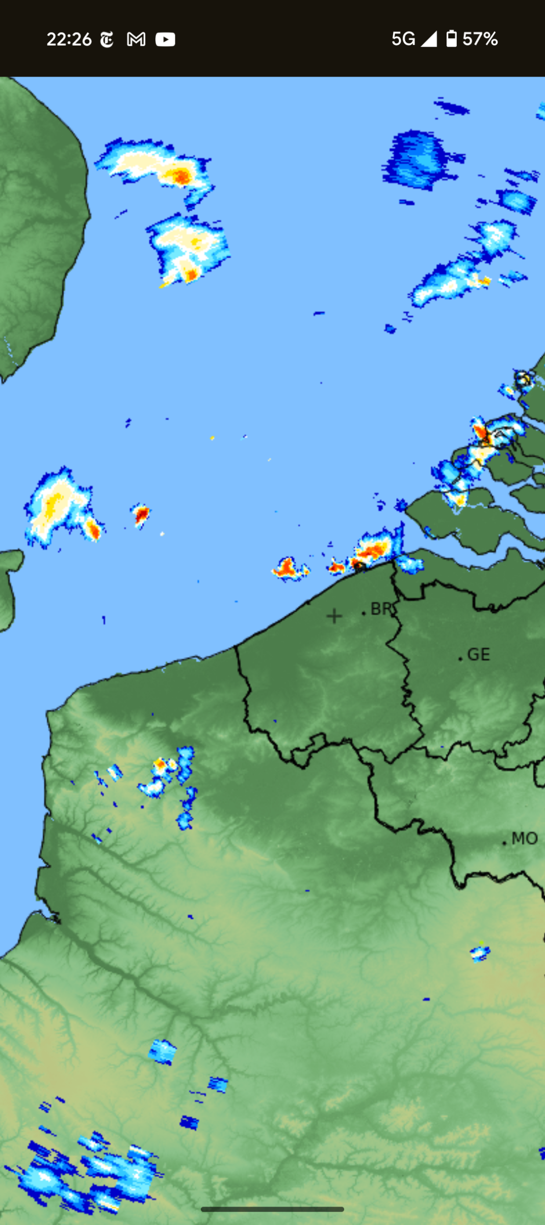 Terwijl ik vanuit Gent de bui N van Oostende fotografeer, zie ik flits