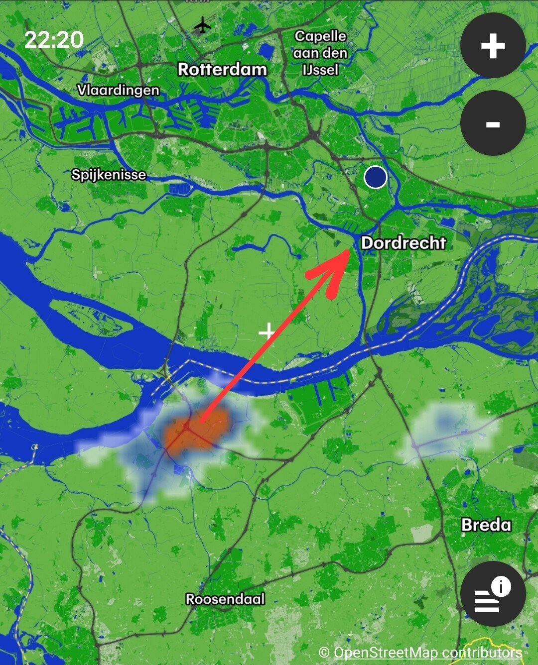 Dat weerlicht zal wel uit dit buitje komen. Even in de gaten houden zolang die het weet uit te houden.