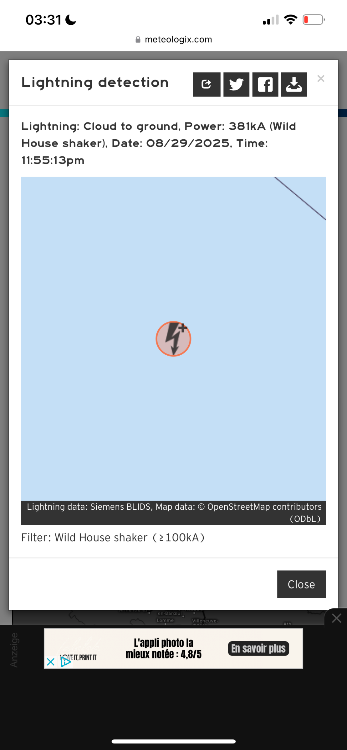 vlak voor de kust. Maar liefst 381kA! Wat een klapper. Hopelijk staat die op foto!