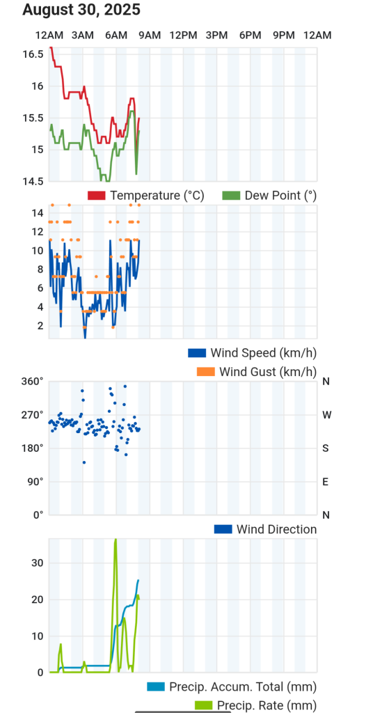 De afgelopen uren trok ook nog een flinke buienstraat over, waarmee de dagsom tot nu toe op 25,1 mm is uitgekomen! Maandsom nu 52,3 mm.