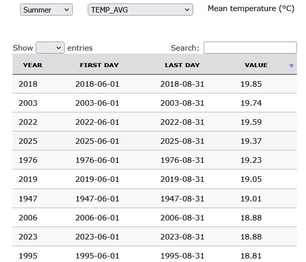 De zomer van 2025 zal de geschiedenis ingaan als een van de warmste ooit gemeten in België. De gemiddelde temperatuur bedroeg tussen 19,3 en 19,4°C, goed voor de 4? plaats sinds het begin van de metingen in 1833. Ter vergelijking: een “normale” zomertemperatuur bedraagt 17,9°C, wat betekent dat het dit jaar gemiddeld 1,5°C warmer was.