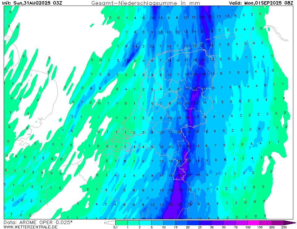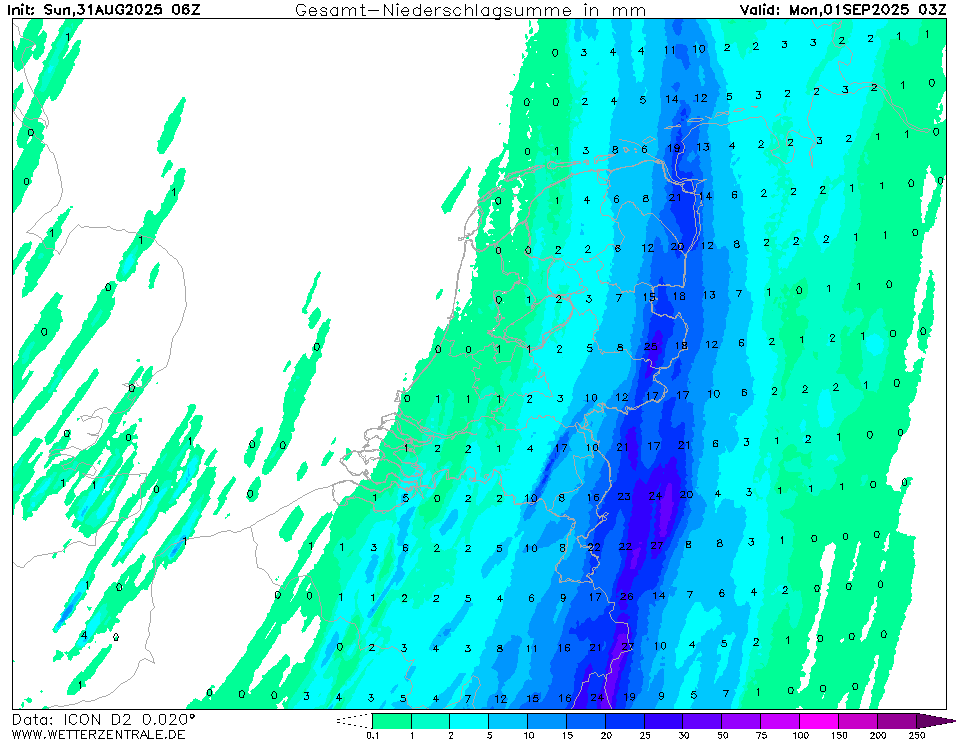 Het is een smalle zone maar lokaal kan er veel vallen. Er is ook kans op onweer.