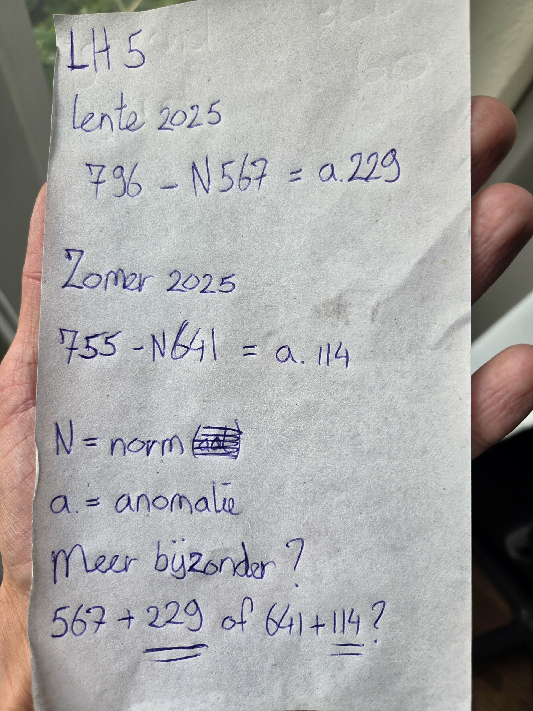 Dus hopelijk dringt het eindelijk een beetje tot jou door. Een anomalie van meer dan 100 uren zon in de zomer ten opzichte van het langjarige gemiddelde werd slechts bereikt door 6 (zes, six, sechs, sei, sex, seis) van de afgelopen 125 zomers. ZES! En de zomer van 2025 is bij die zes. "Niets bijzonders"? Ga toch weg man, dit is toch echt niet meer serieus. Feiten doen er niet meer toe en als je geconfronteerd wordt met die feiten, die niet te ontkennen zijn, dan wordt er maar wat met modder gesmeten dat er "lulverhalen" zouden worden verteld. Hopelijk heb je in een helder moment straks eindelijk eens door dat er hier eigenlijk maar enkelen "lulverhalen" vertellen over de wérkelijke prestaties van de zomer van 2025. En ja Stan, jij bent er daar één van.