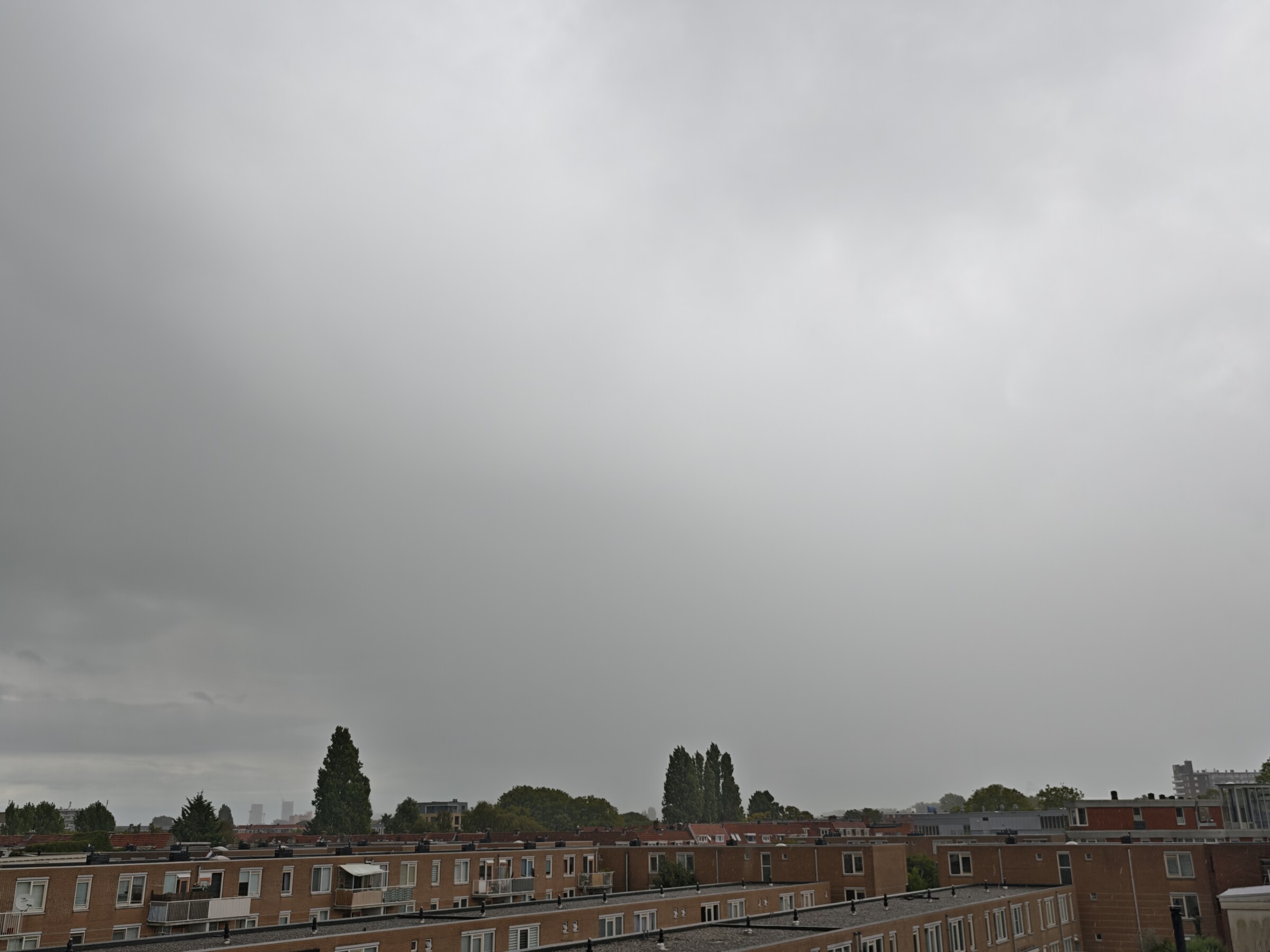 Hier was het gesprenkel, de straten werden net nat, de zwaarste deel van de bui trok zuid langs, maar je kon het geruis goed horen