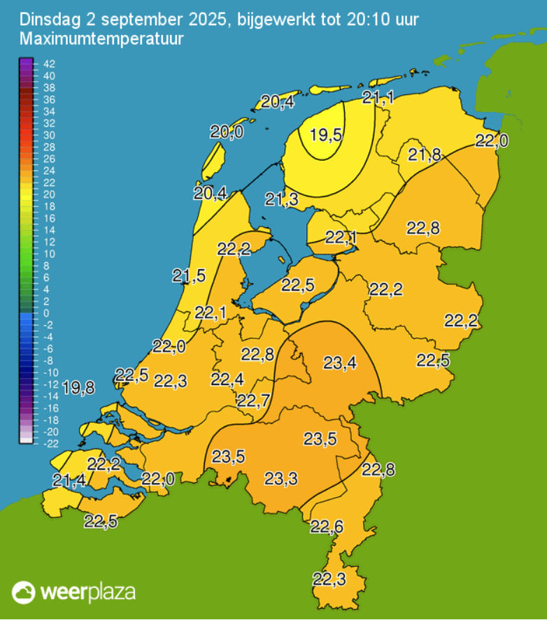 Ik hou erg nauwkeurig de drie modellen (EC/AIFS/GFS) bij en kom op heel andere waarden. En het klopt precies wat Seppie schetst. Dat de oper voor vandaag te laag zat kan niet kloppen. Het gebeurt geregeld dat jouw DMO bijvoorbeeld 23,4 °C aangeeft, terwijl de verwachte waarde om 14:00 uur hoger zit. En vanaf 14:00 uur mag je er gemiddeld 1,5 °C bij optellen om op de verwachte Tx uit te komen. En dan heb ik het nog niet over correcties of correcties op correcties.
