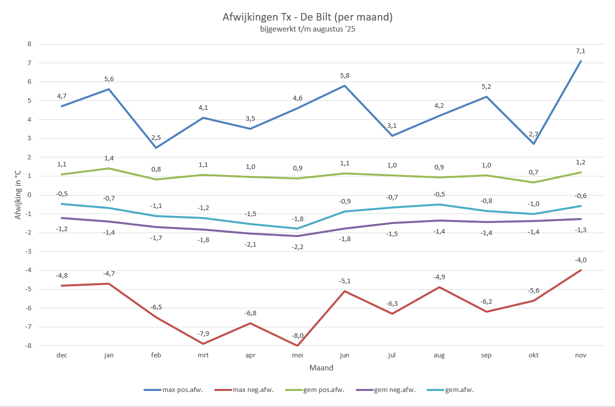 Die is gebaseerd op bijna 8 jaar aan data, welke aantoont dat de gemiddelde afwijking voor de Tx over de volledige dataset -0,9°C bedraagt.