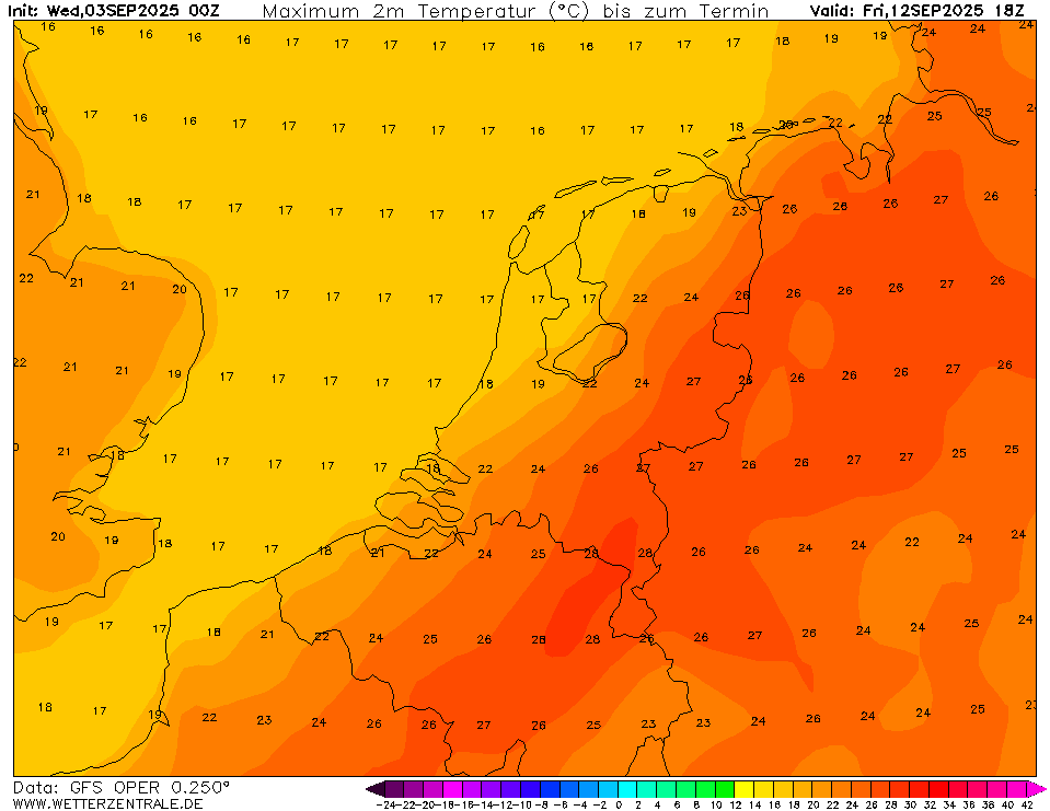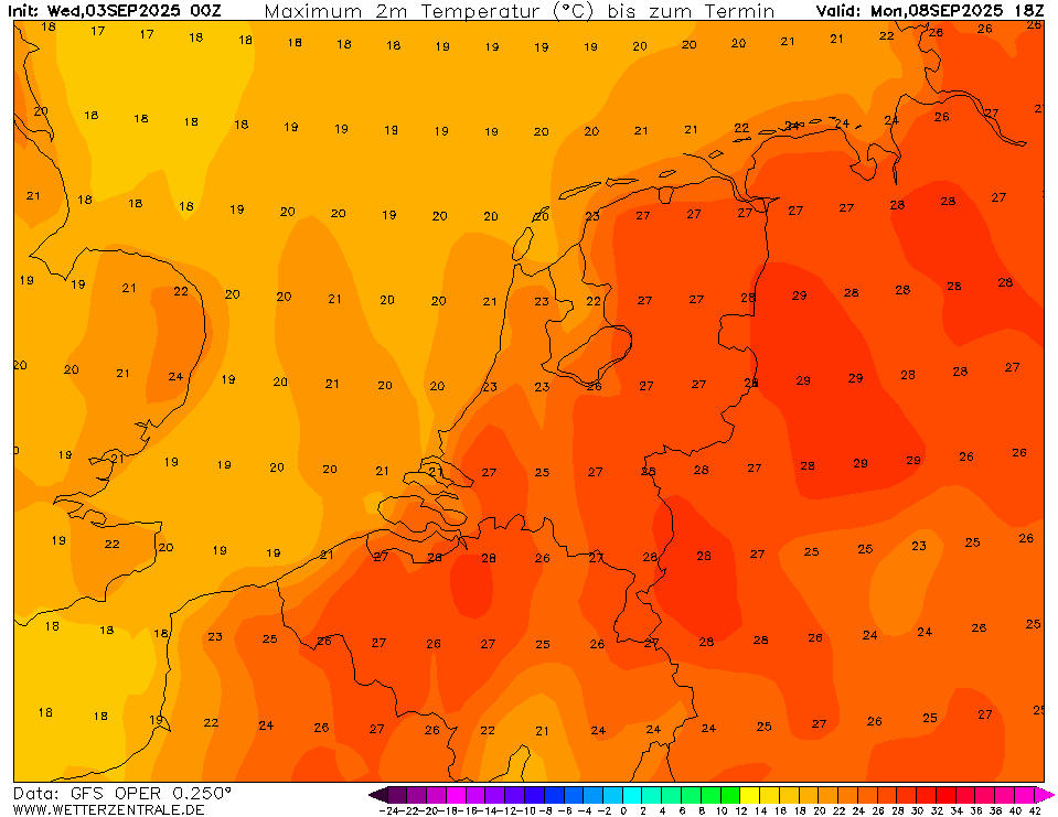 Voor Brussel komt enkel de oper nog aan 30.0°, terwijl dat gisteren