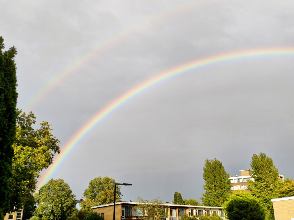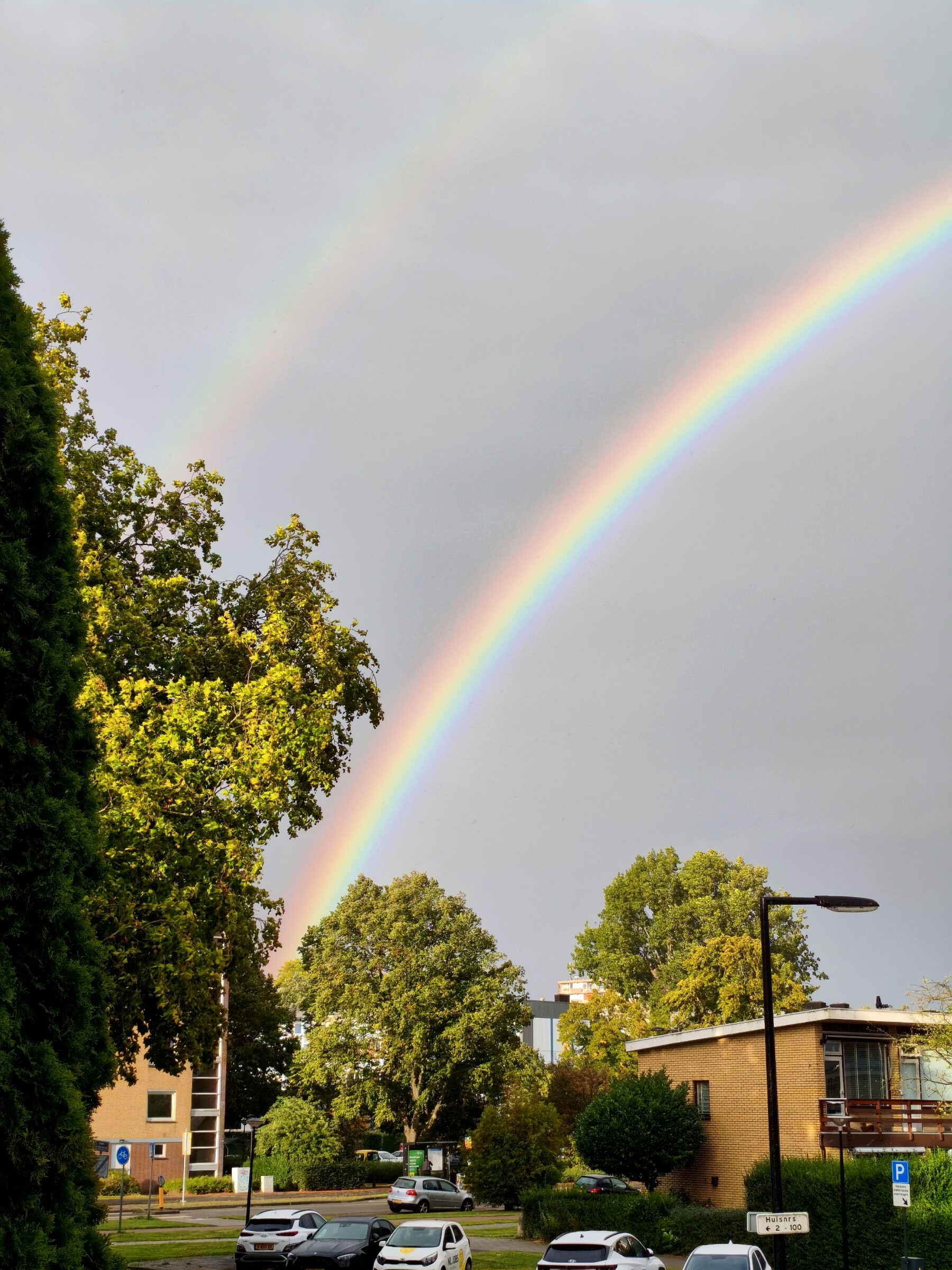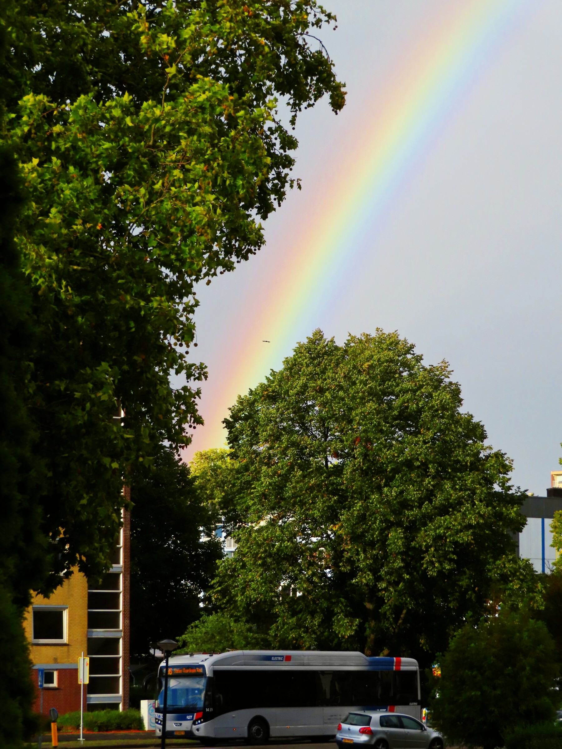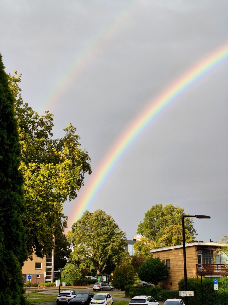Weinig neerslag in Vlaardingen maar zeer felle regenboog.
