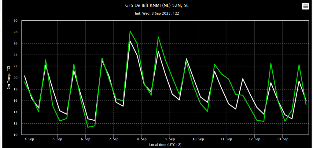 Gezamenlijke GFS Opers zaten vandaag 0,5°C te laag - De Bilt