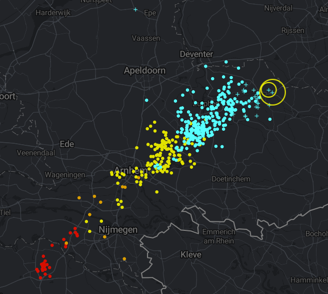 En weer is het onweersgat van Apeldoorn goed zichtbaar lol. Dit jaar nog geen enkele fatsoenlijke onweersbui hier gehad, alles trekt er net langs of ontstaat ten oosten. Misschien dat ik vorig jaar alles opgebruikt heb