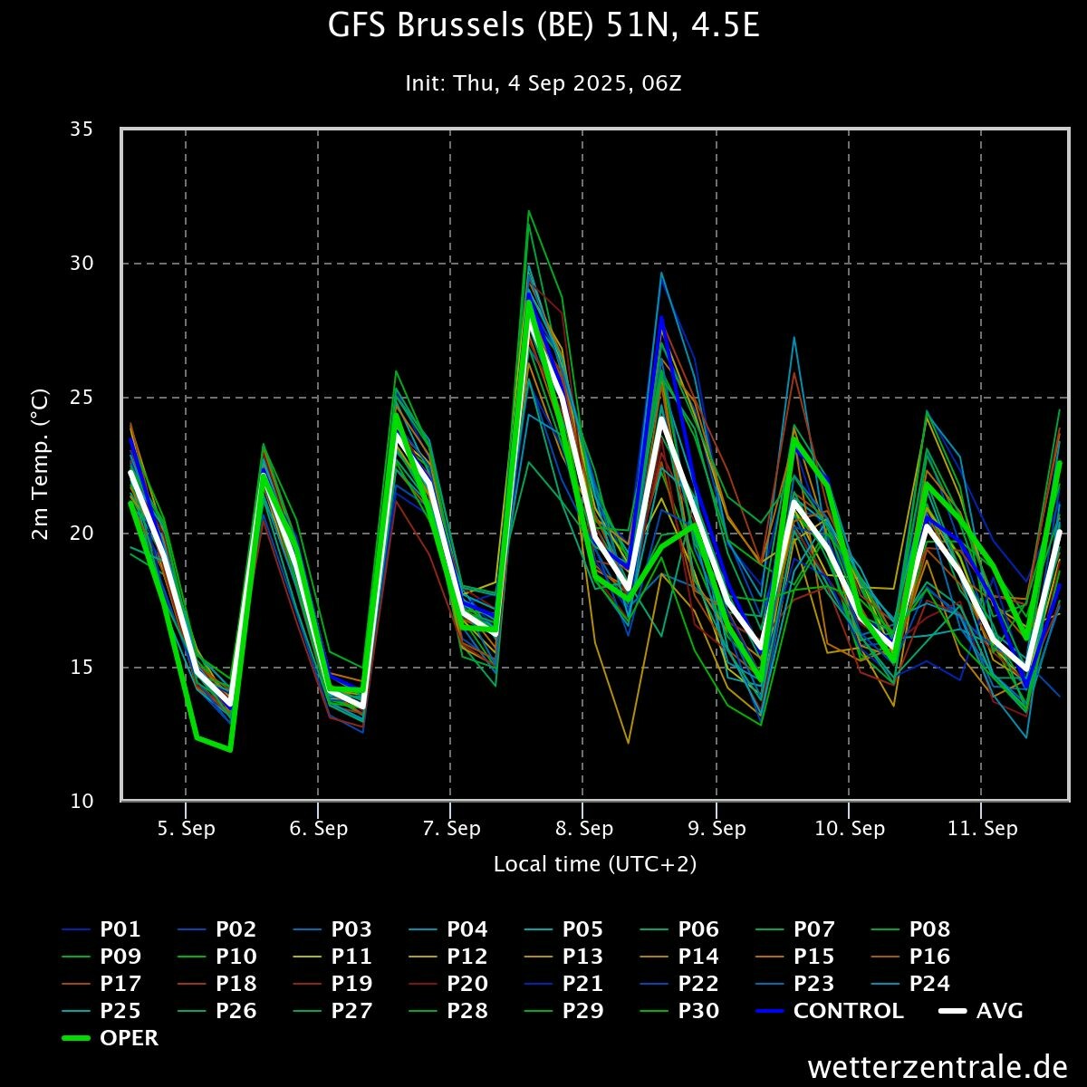 met vorige runs. Is wel geen maximumtemperatuur, maar anders steevast boven de 30° in deze ensembles?