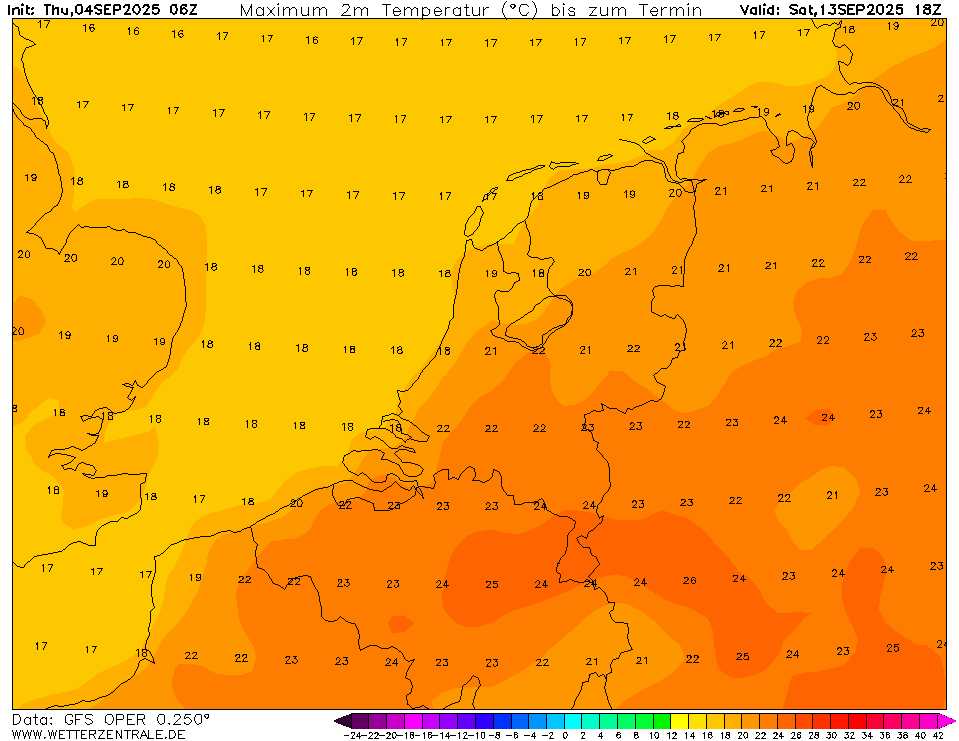 Wederom een warme run van GFS en ook de overgang naar beduidend koeler weer wordt uitgesteld