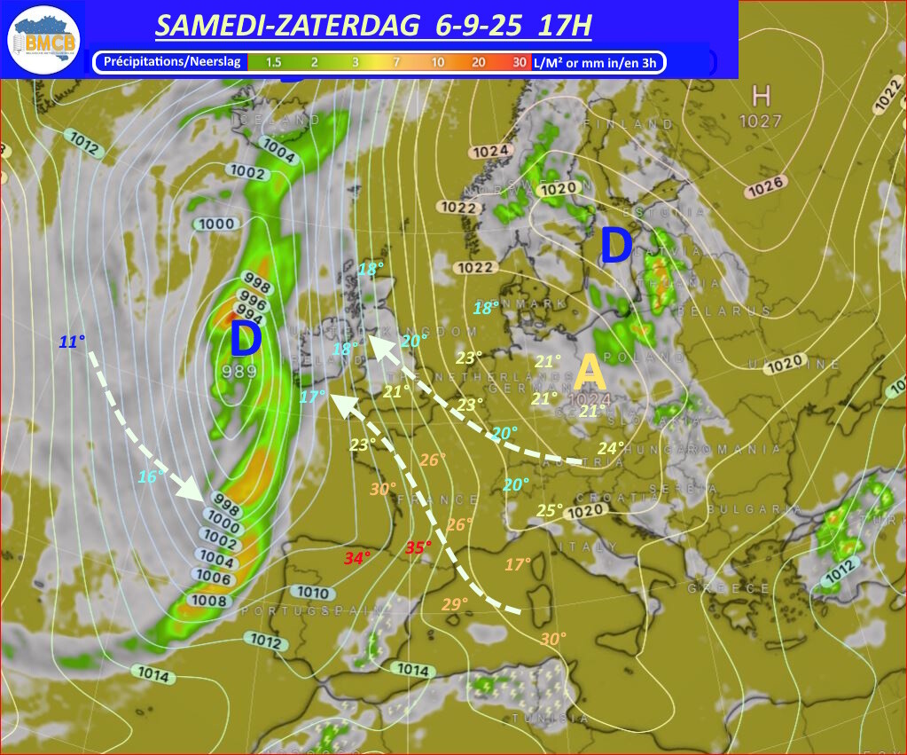 Het zal de nog relatief koele zeelucht stabiliseren en vanaf zaterdag een droger en zachter zuidoostelijk stroming langs zijn westelijke flank brengen.