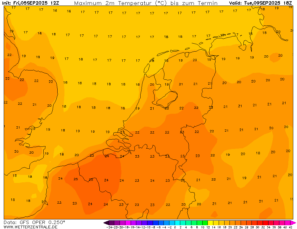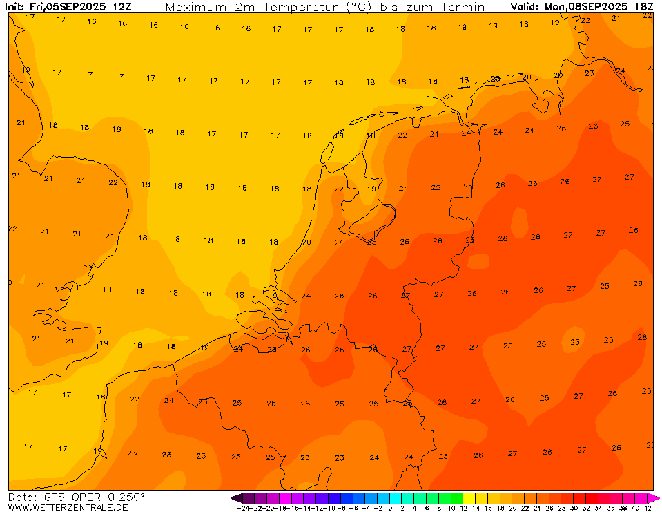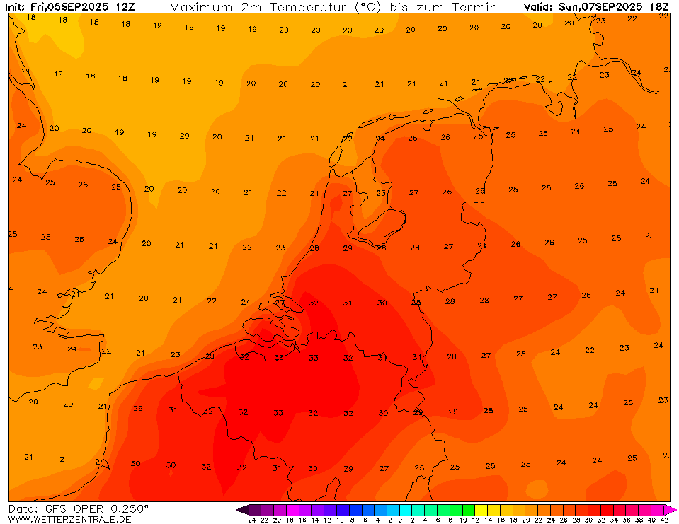De tropische dag voor delen van Nederland op zondag blijft in de verwachting zitten.