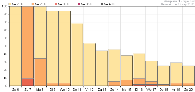 Het gemiddelde komt tegen de 40 mm de komende 15 dagen.
