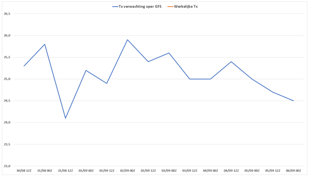 het gemiddelde van de laatste 14 opers van GFS. Eens kijken hoe de oper vandaag presteert. AIFS-oper komt op 23,4 °C