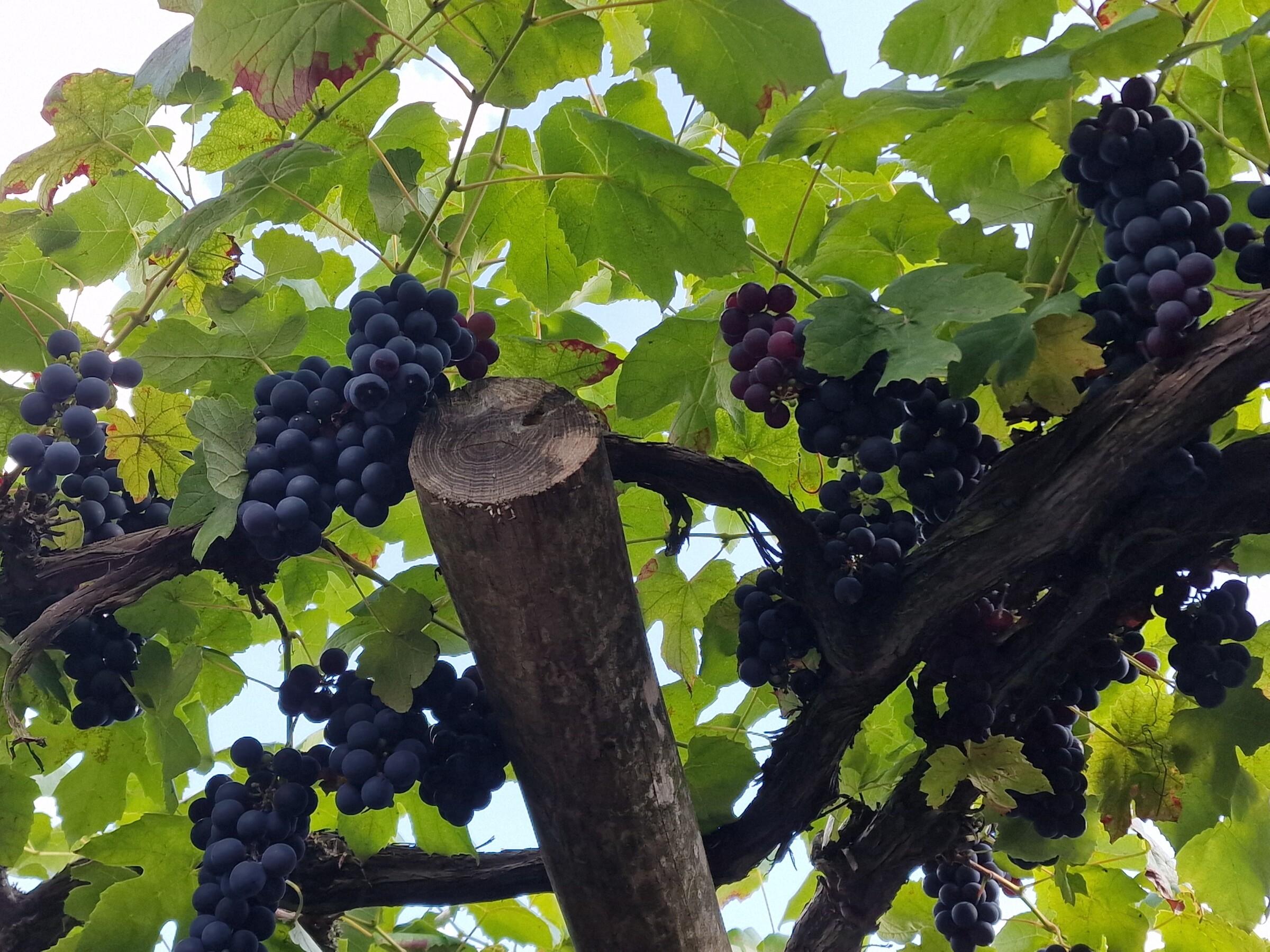 Vorig jaar een drama. Alle druiven verrot door het vocht. Nu zeer goed jaar!