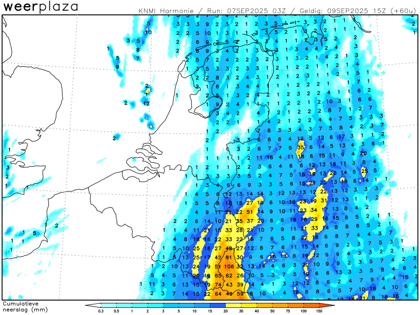 Nacht en ochtend ma-di veel regen in het ZO?