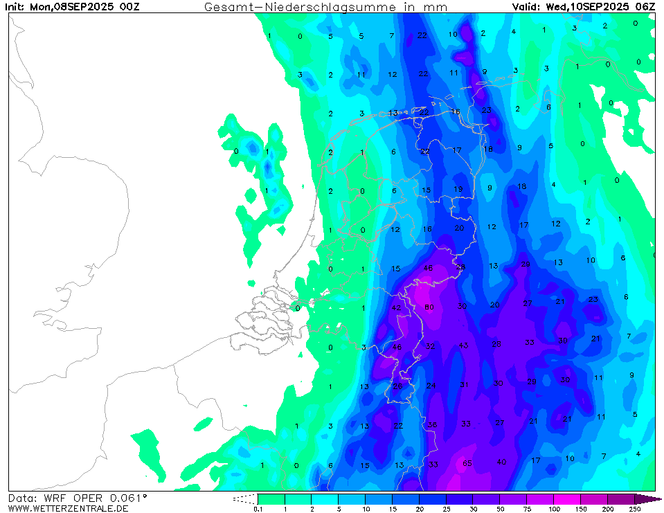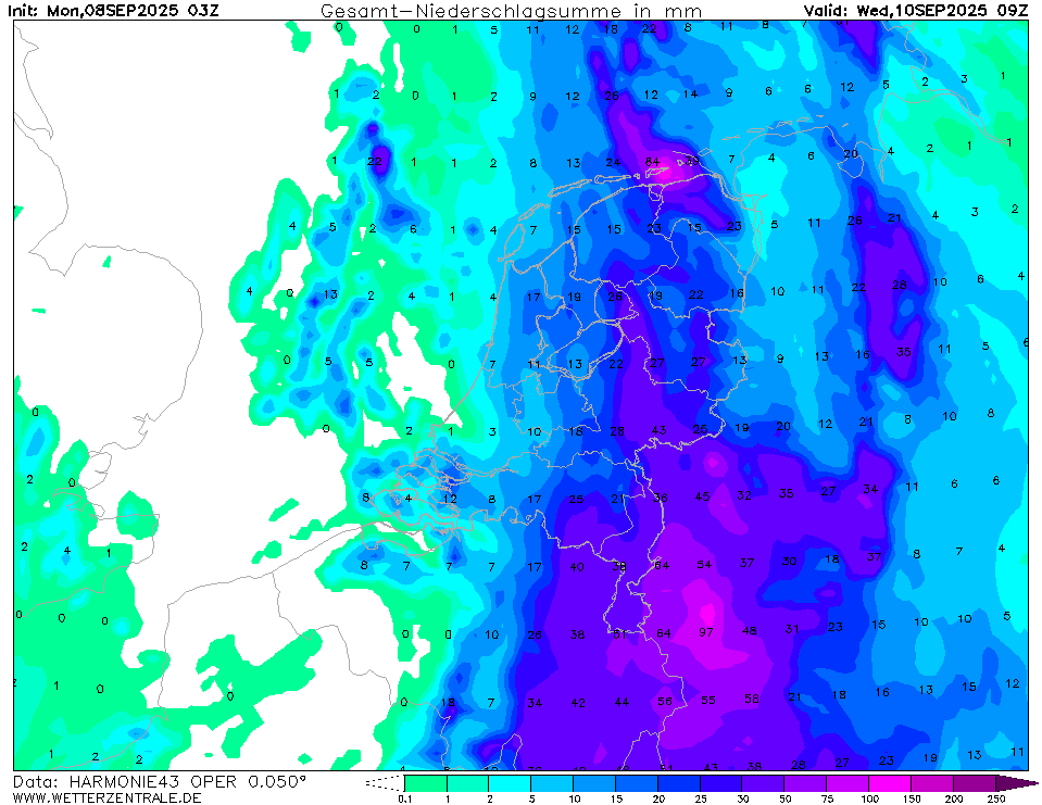 In het zuidwesten volgens deze run wel een paar flinke buien
