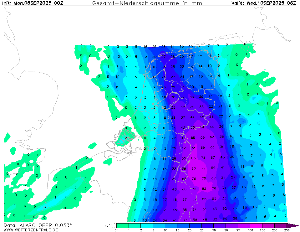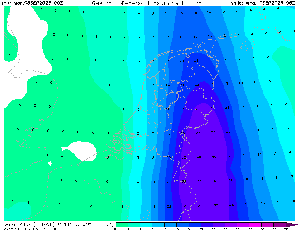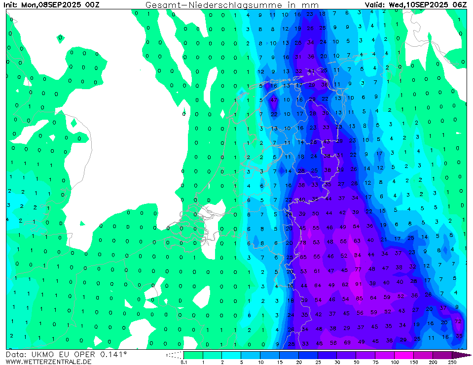 We moeten zelfs rekening houden met een scenario dat het alleen in Duitsland tot grote neerslaghoeveelheden komt. Maar goed, wellicht komt de meeste neerslag volgende runs weer westelijker uit. Maar ik vrees ervoor...