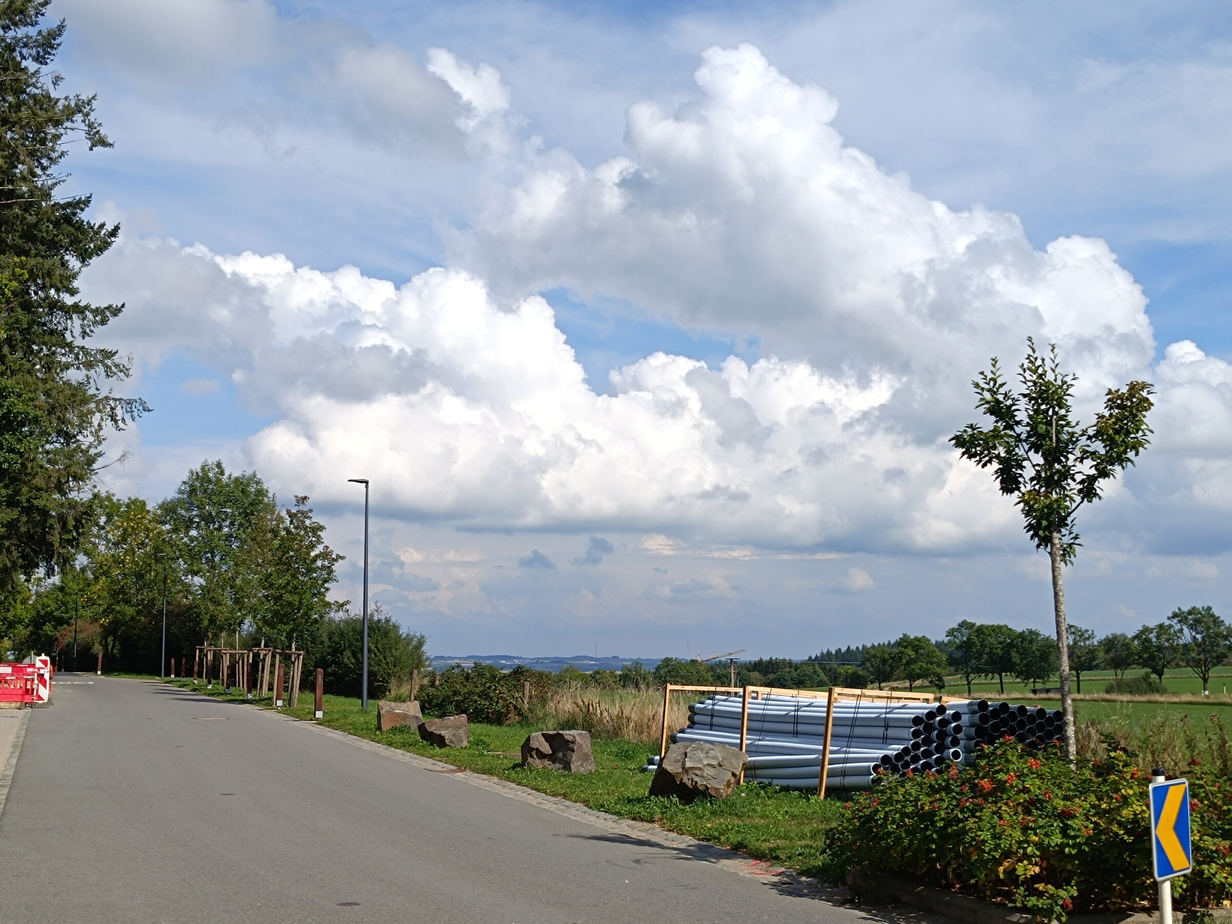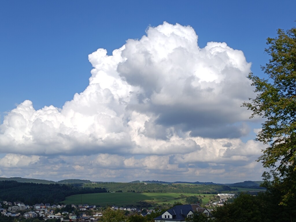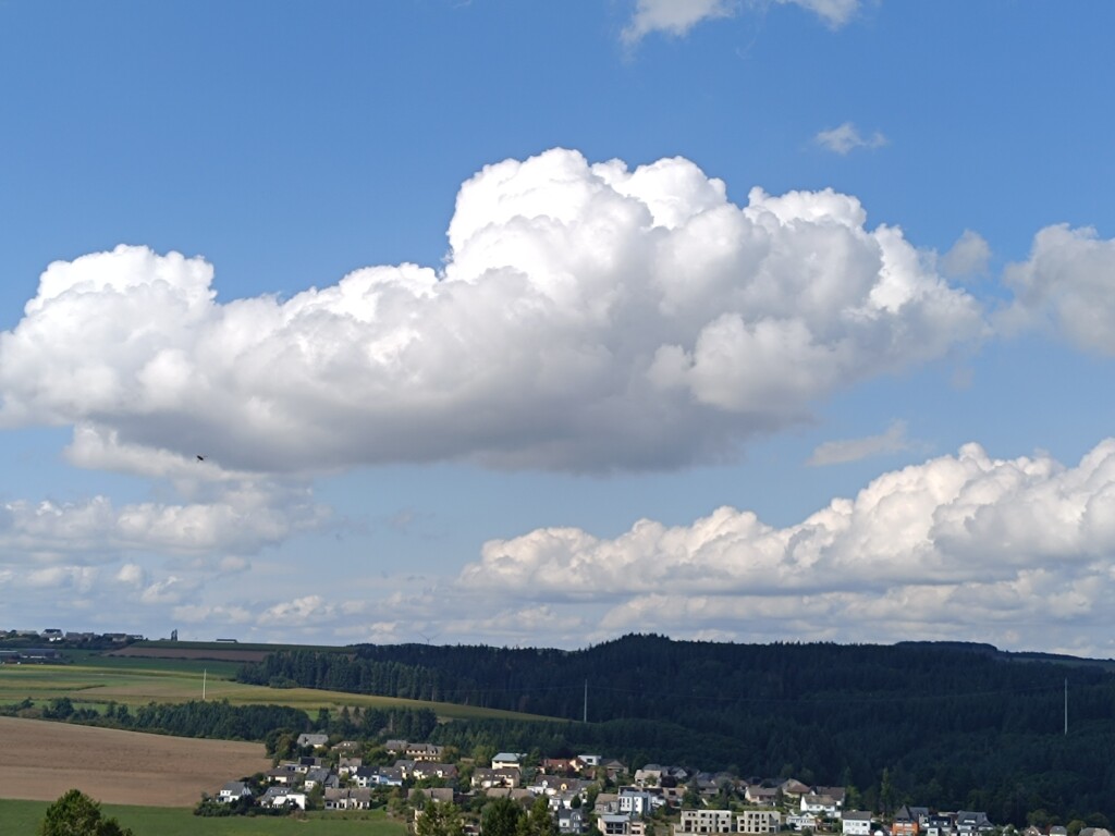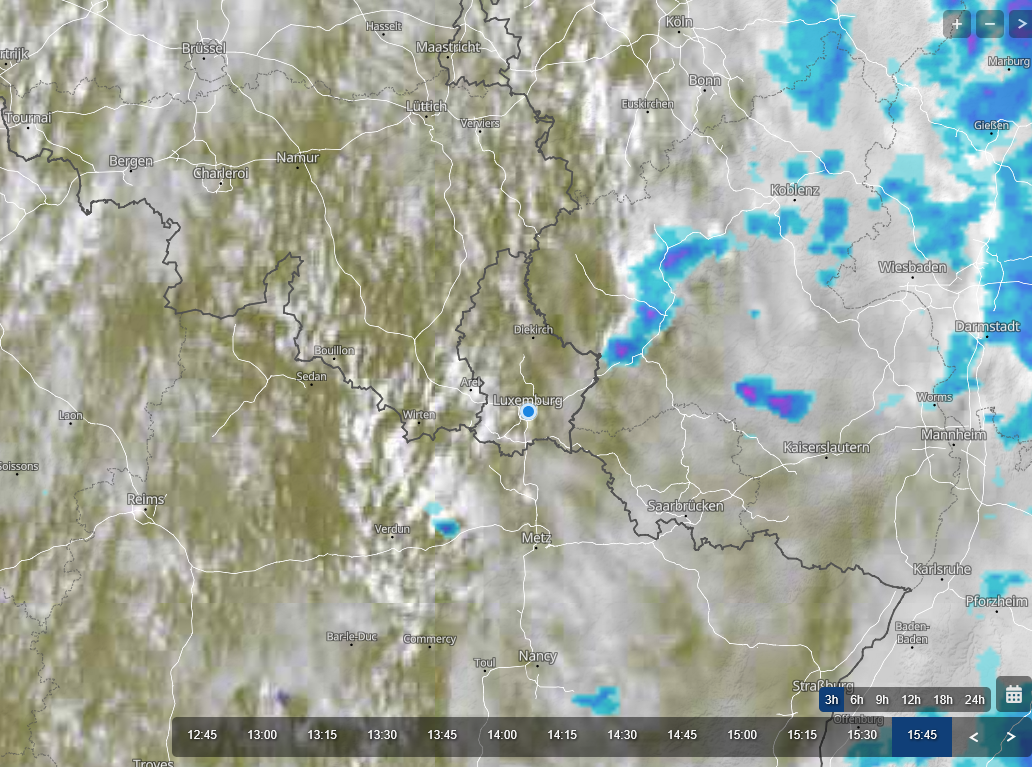 Boven bij Roullingen zie ik zelfs een wat wazige lucht in het oosten, die wijst op een aanzet naar buienontwikkeling.