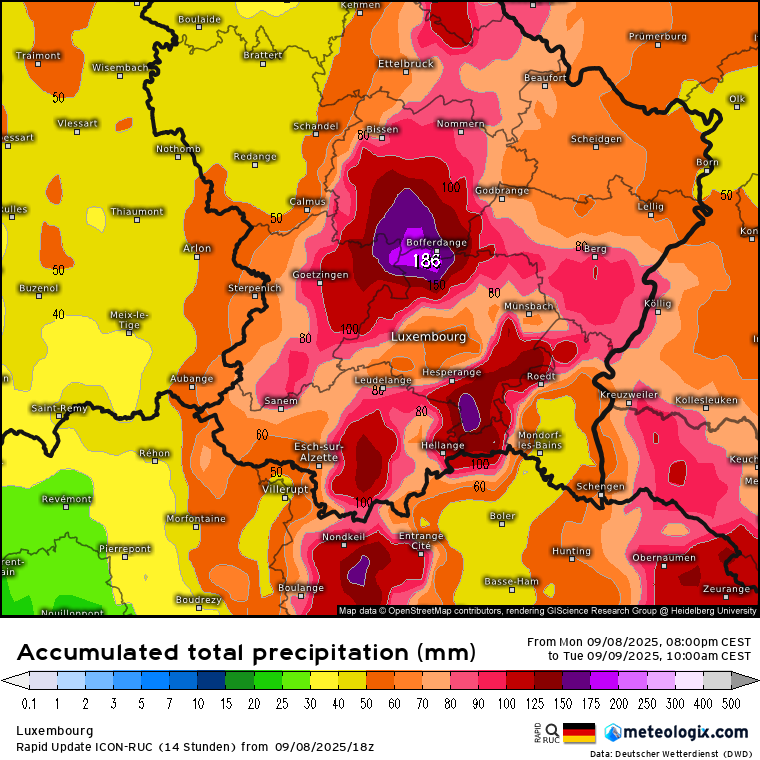 Lokaal al 50mm+ daar uit die buien dus als ze daar nog een paar van die stortbuien krijgen op dezelfde plaatsen is die 100mm al vlug binnen.