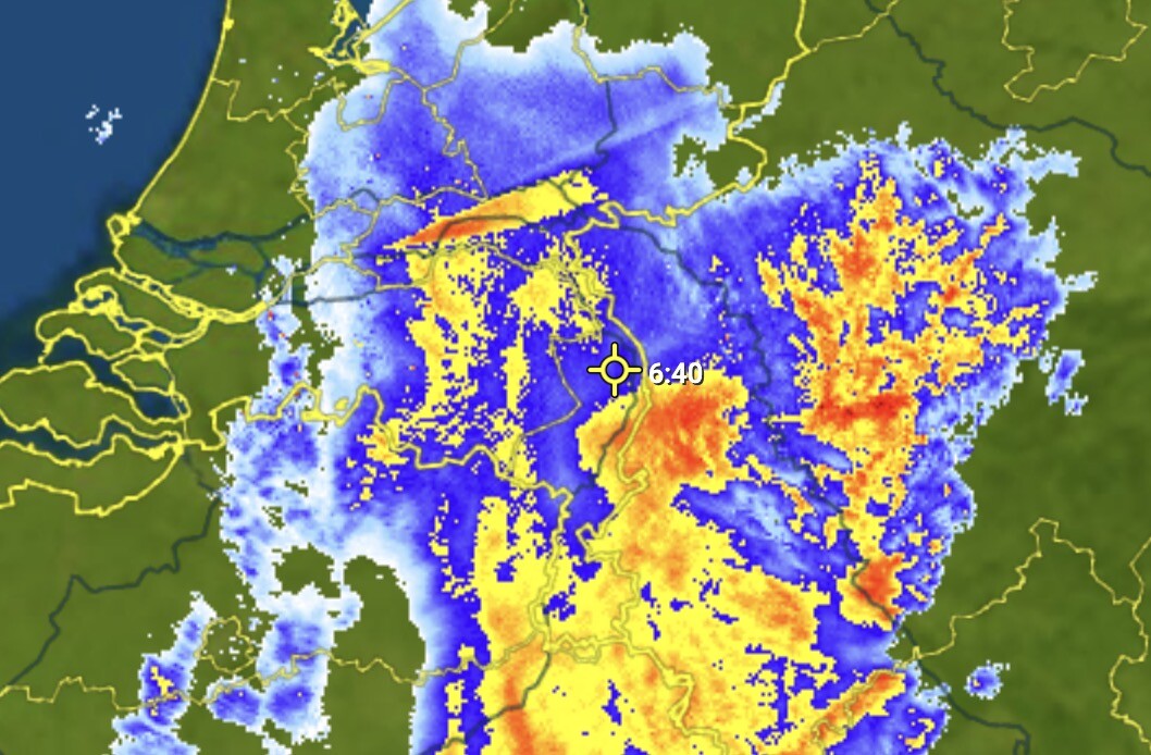 Maar de fut lijkt er ook een beetje uit. Het meeste valt verreweg aan de Duitse kant. Ik ben benieuwd of er nog wat overzwiept want het zou nog even moeten doorgaan.
