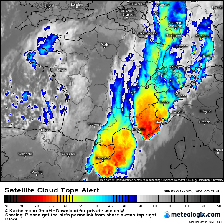 Ik denk dat het daar zelfs door de troposfeer is geschoten, over shooted top van -80°C, grote hagel is ook aanwezig in het complex.