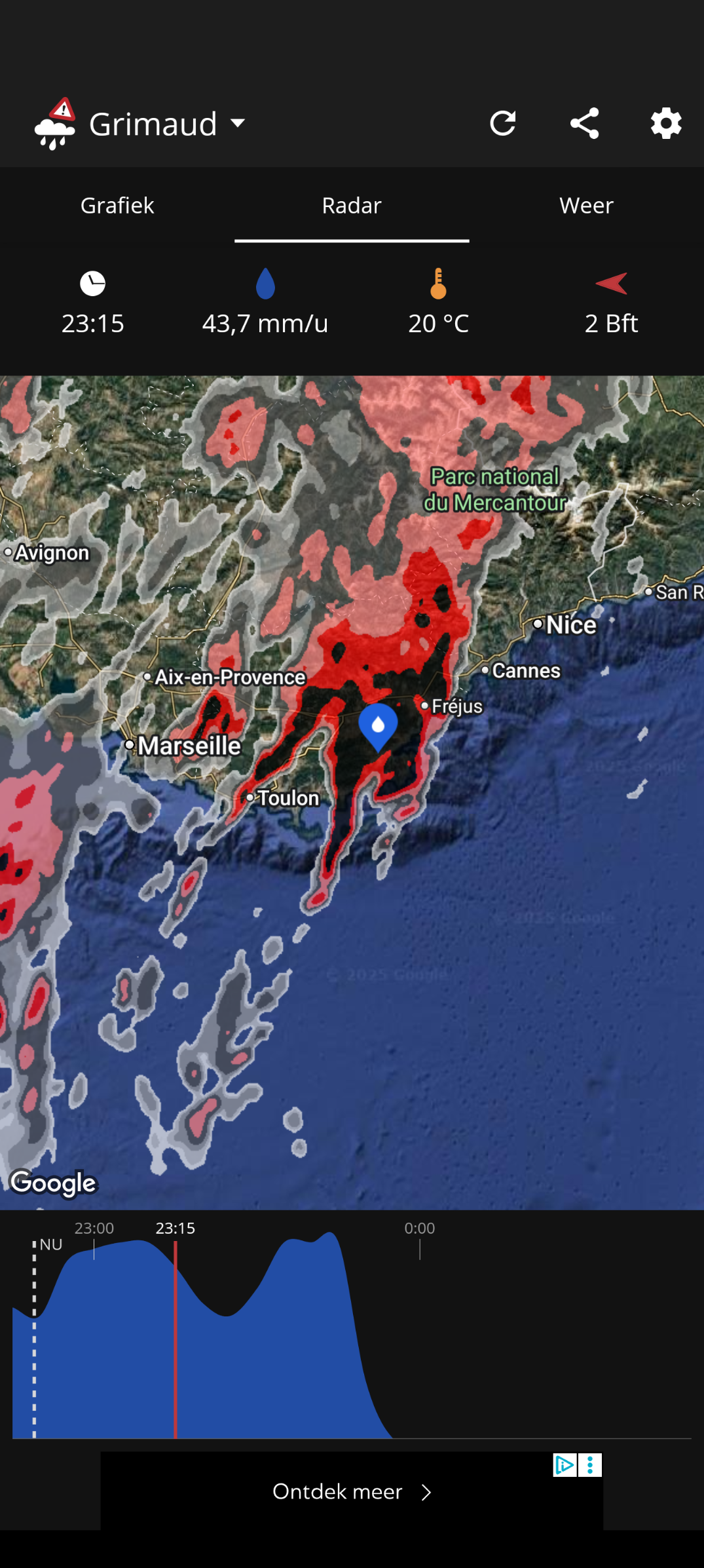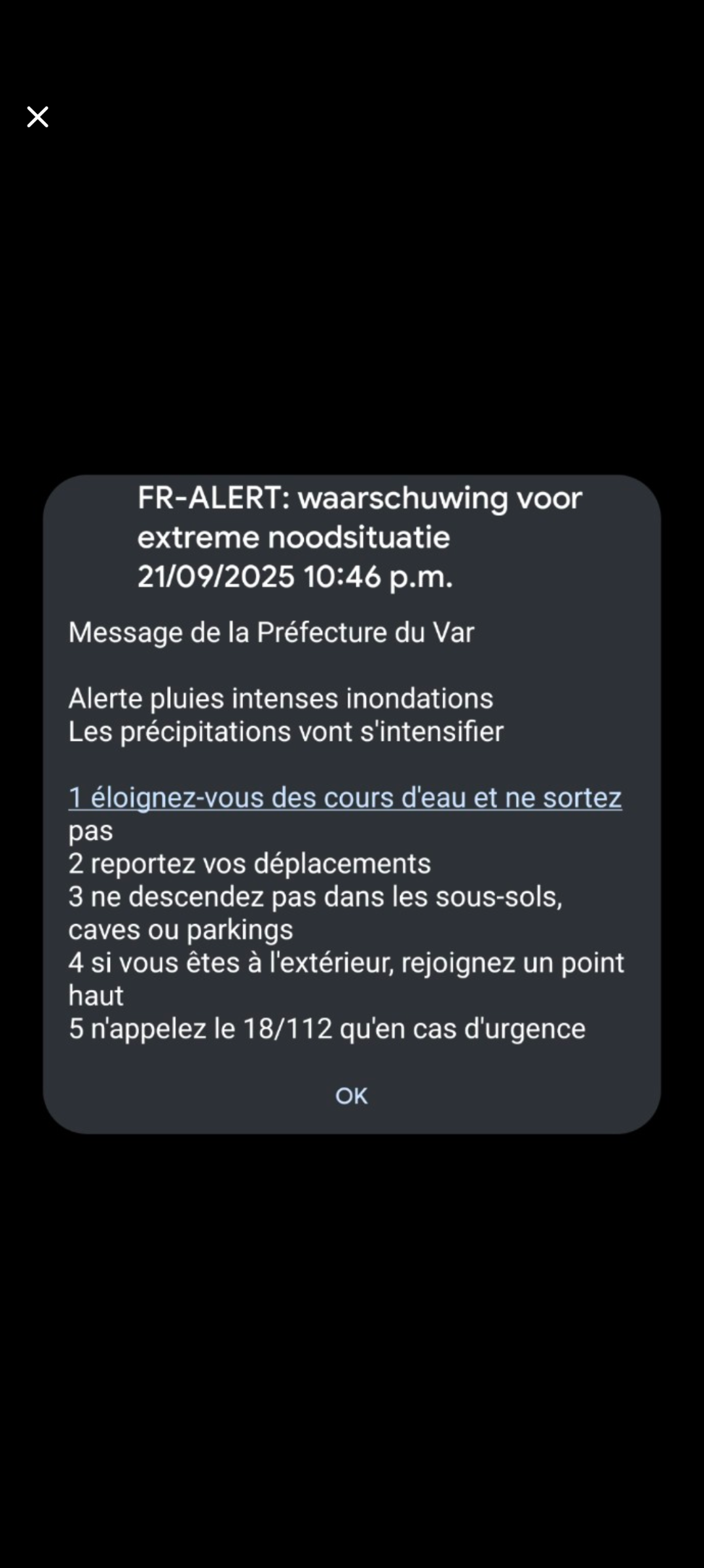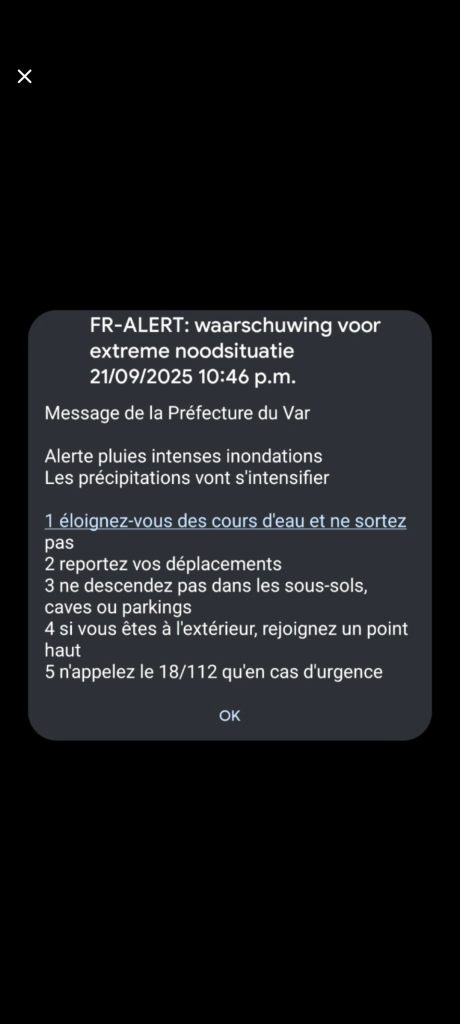 En nu net ook een Franse amber alert binnen gekregen. Hoop dat het mee gaat vallen. Hoorde net ook al hagel vallen op het dak, hopelijk geen verdere schade.