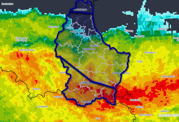 dus meer sprake van langdurige gestage regen dan intensieve regenval. Bodem kan nog veel opnemen en verzadiging volgt dan de mogelijke overlast. Stel 100 mm in 3 dagen is beter dan 100 mm in 12 of 24 uur. Ik kreeg de indruk dat het helemaal los zou gaan in jouw omgeving en aangrenzende deel van Duitsland..
