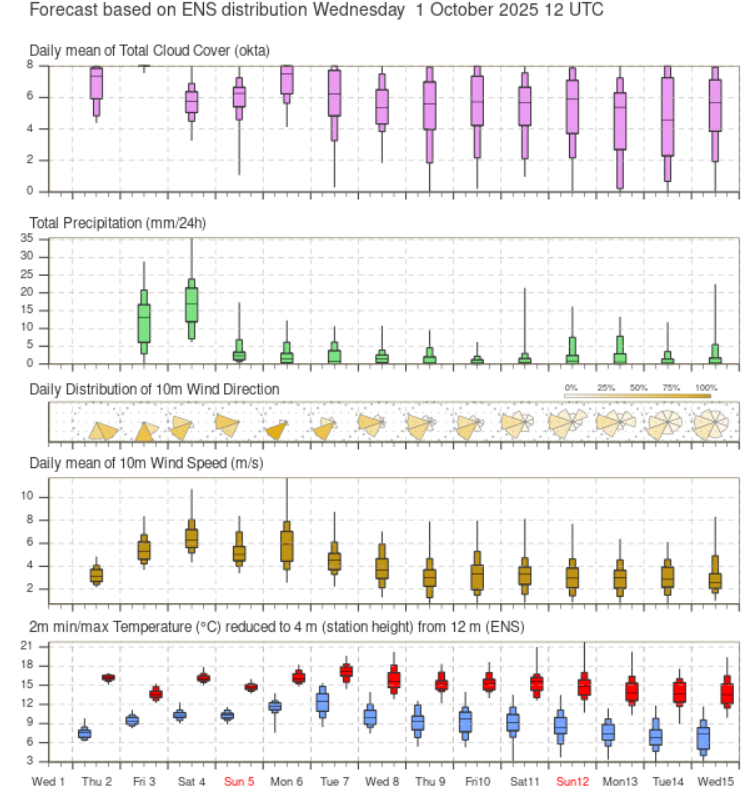 De meest sombere dag zou vrijdag wel eens kunnen zijn, met dan ook de laagste Tx.