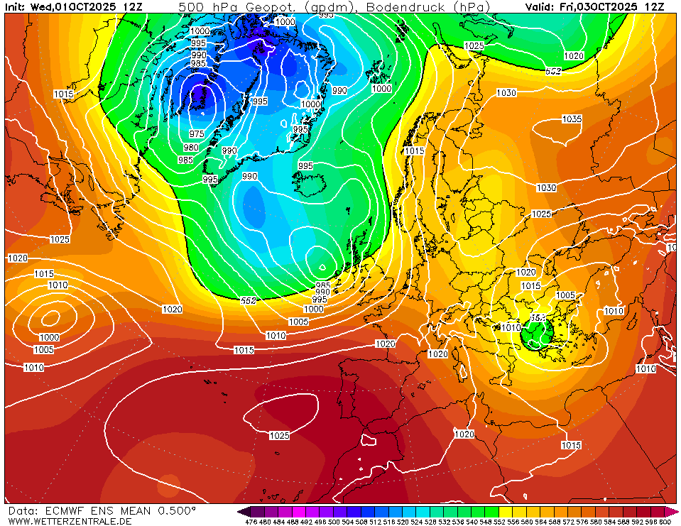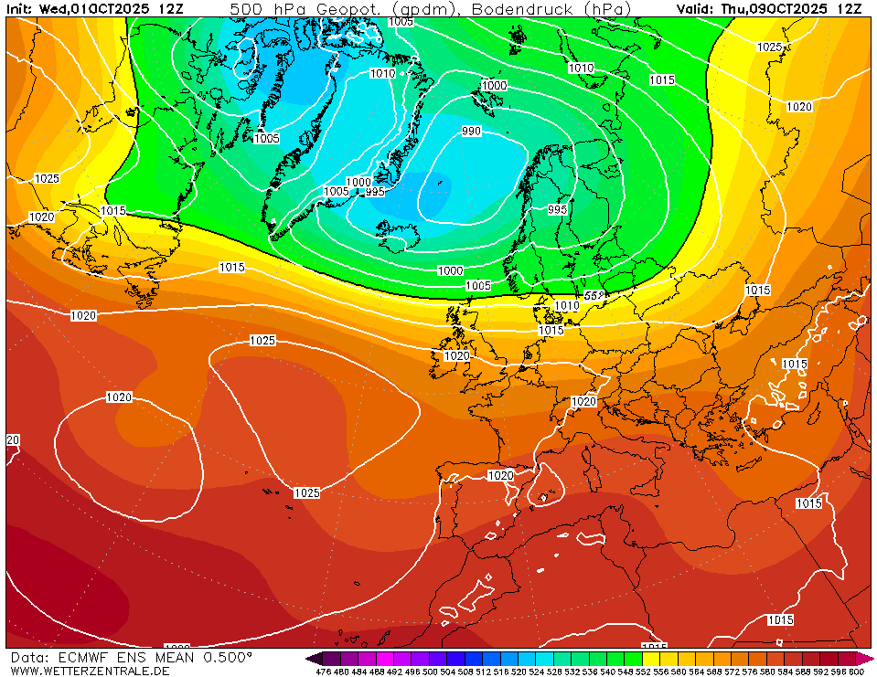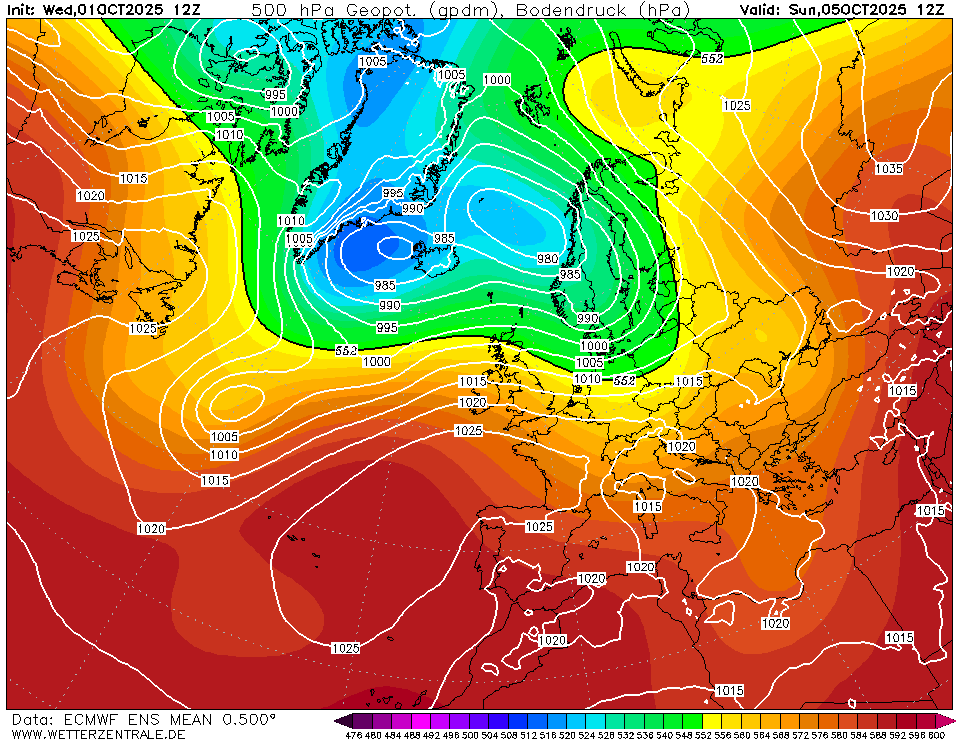 In het verdere verloop blijft de straalstroom een paar honderd kilometer ten noorden van ons. Grote hoeveelheden neerslag worden dan niet verwacht, maar geheel droog zal het ook niet zijn.