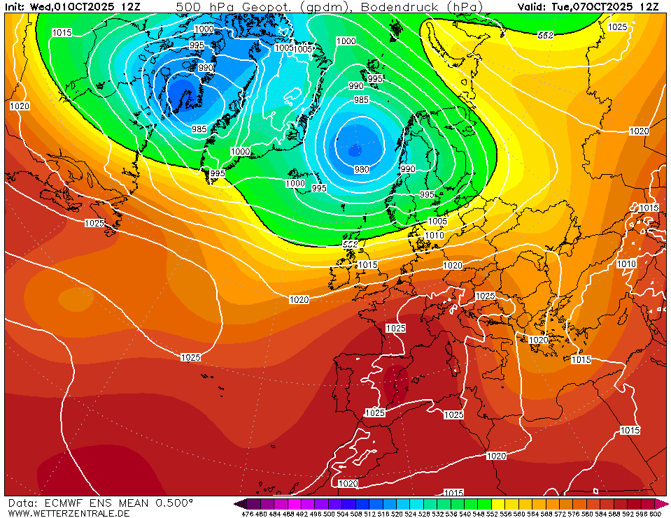 Na het weekend wordt de stroming zuidwest en komt hogedruk ten zuidoosten van ons met lagedruk ten noordwesten. De grootste onstabiliteit zou dan in het noorden van de BeNeLux komen te liggen.