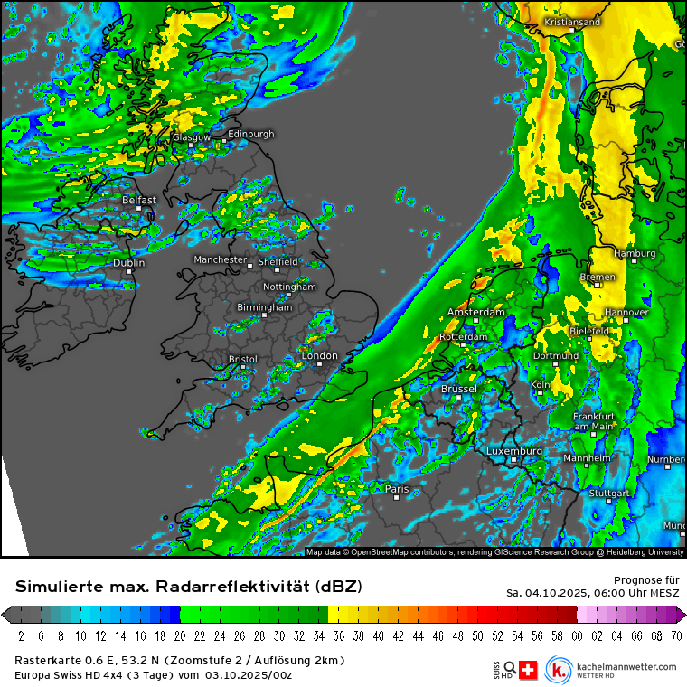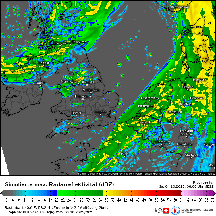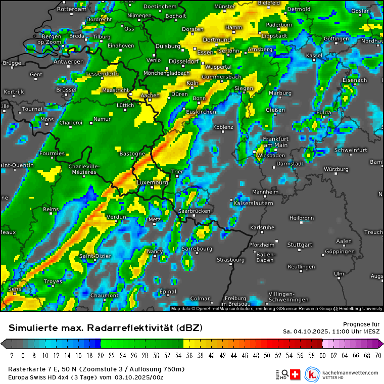 Goedemorgen! Swiss-HD 00Z laat op de koufrontpassage morgenochtend een zeer langgerekte Narrow Cold Frontal Rainband (NCRF) zien, wat tot wat opvallende weersverschijnselen kan leiden. Echt zware windstoten worden daarbij door de verschillende modellen in onze regio niet berekend, behalve misschien aan de Nederlandse kust.
