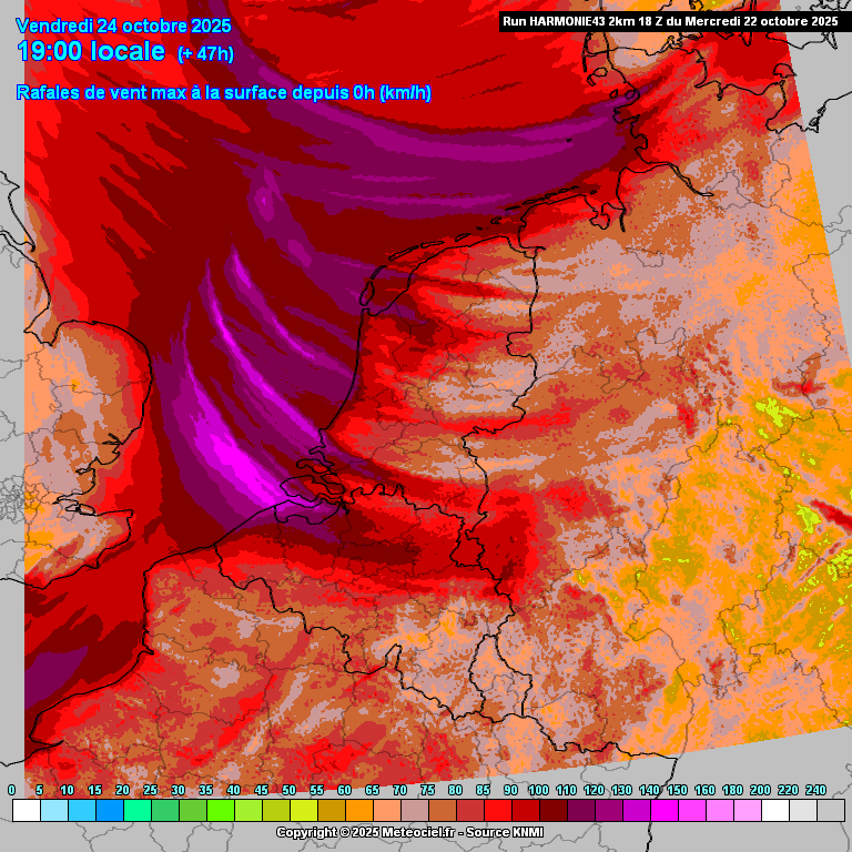 Ik heb de runs van Harmonie vandaag een beetje gevolgd en meestal worden er een stuk of 4-5 aparte lagedrukkernen berekend die vanuit het noordwesten op de kust worden gericht, maar elke keer ergens anders. In de nieuwste run zie je ook weer duidelijk de lokale verschillen met zelfs windstoten tot 140 km/h in Zeeland.