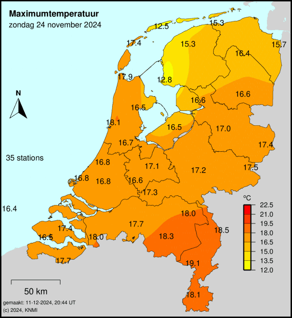 vorig jaar 24 nov19,1 graden in Hupsel sorry bedoel Ell. Dat vind ik wel bijzonder. Tact 15,1 normaal 11,5. Oftewel binnen de bandbreedte.